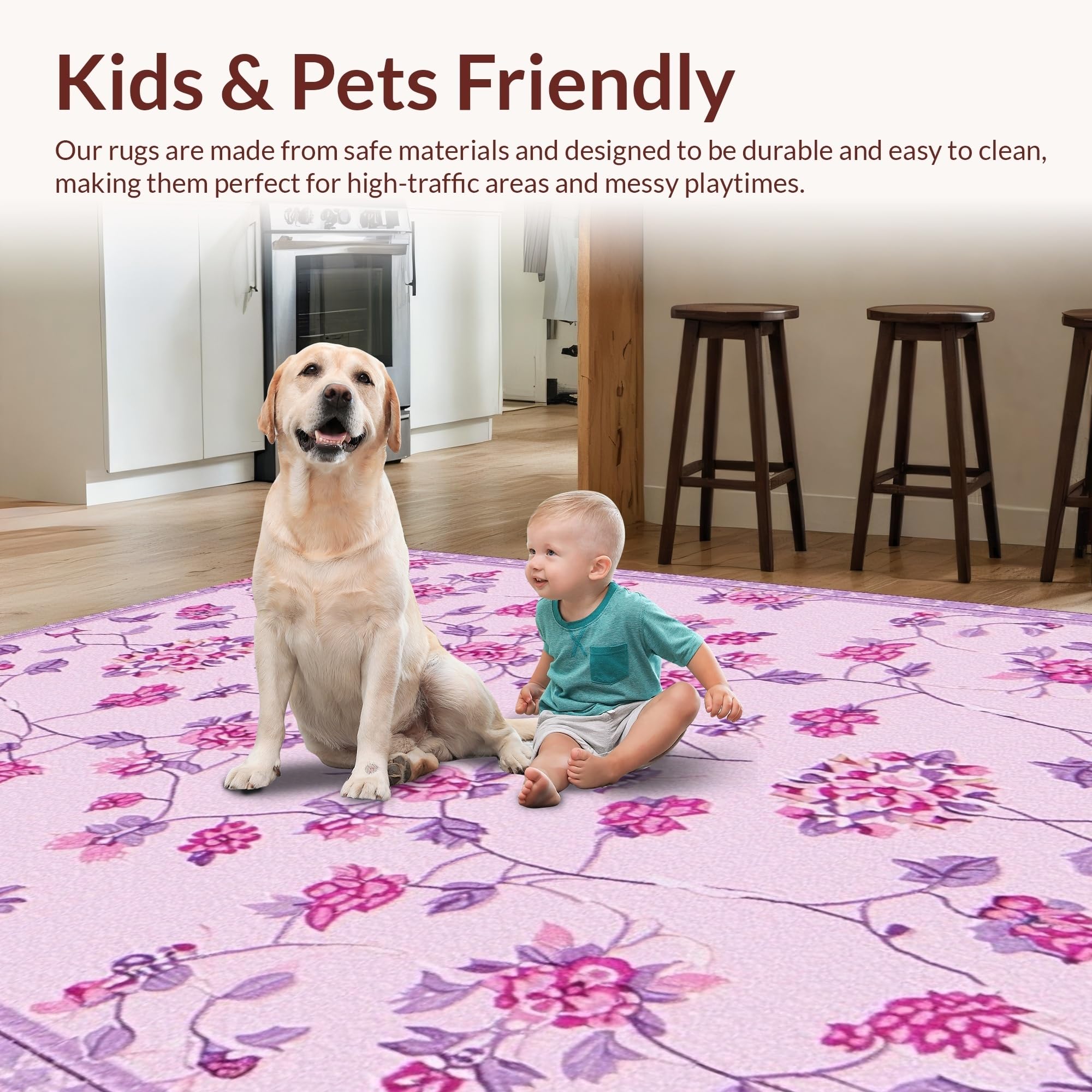 Ultra Soft Area Rug, Non Slip, Stain Resistant, Washable Area Rugs for Living Room, Bedroom, Bright Cozy Plush Aesthetic(Pink) Overview: