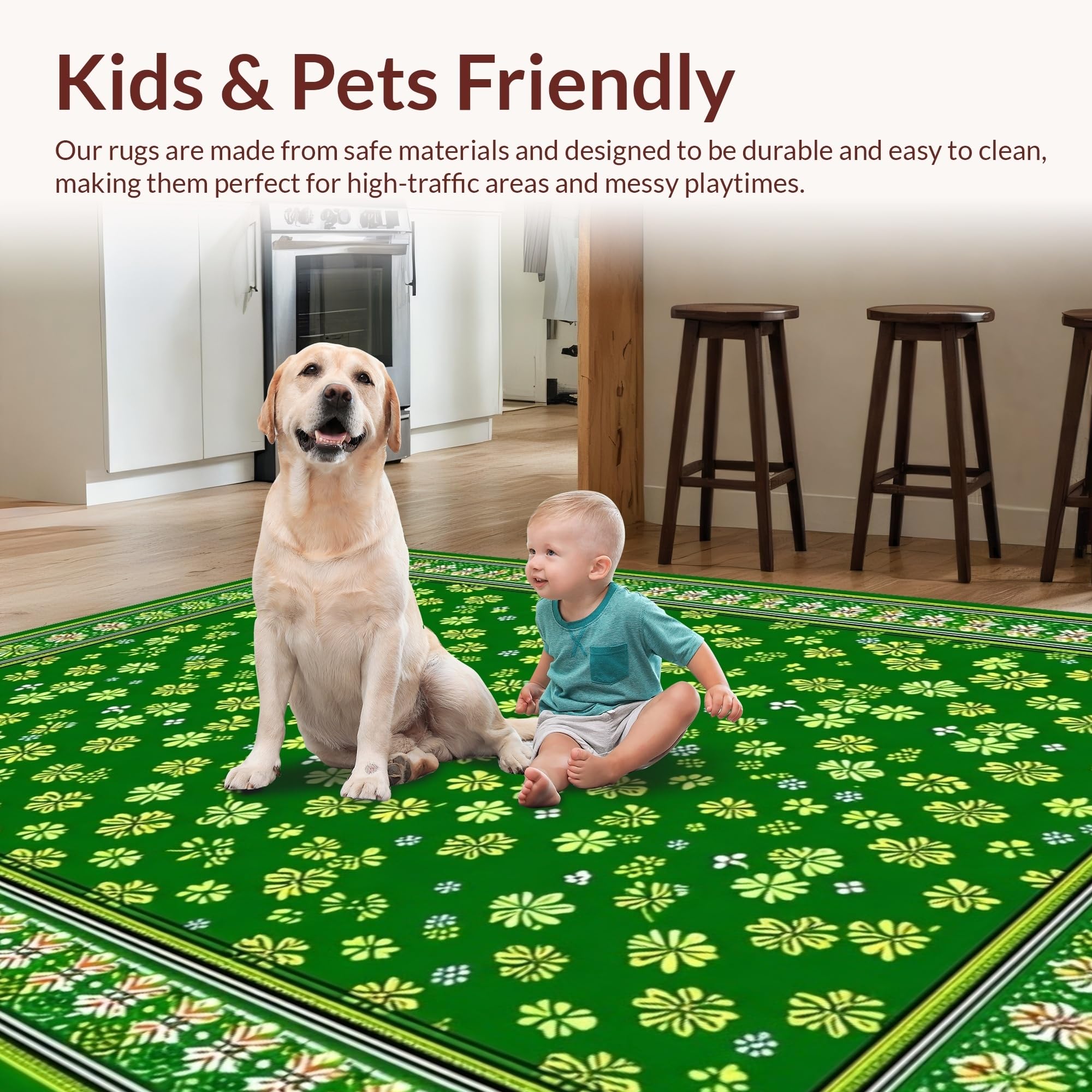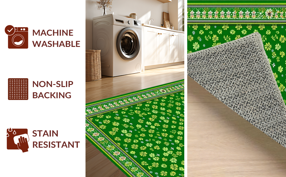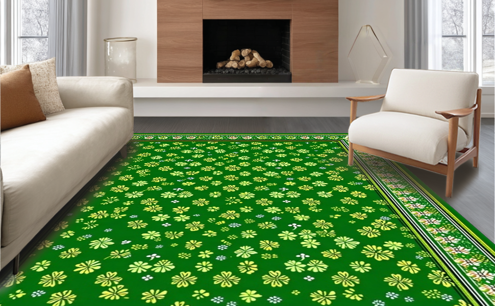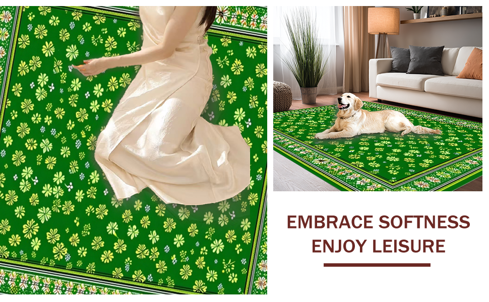 Ultra Soft Area Rug, Non Slip, Stain Resistant, Washable Area Rugs for Living Room, Bedroom, Bright Festive Lattice Arrangement(Green) Overview: