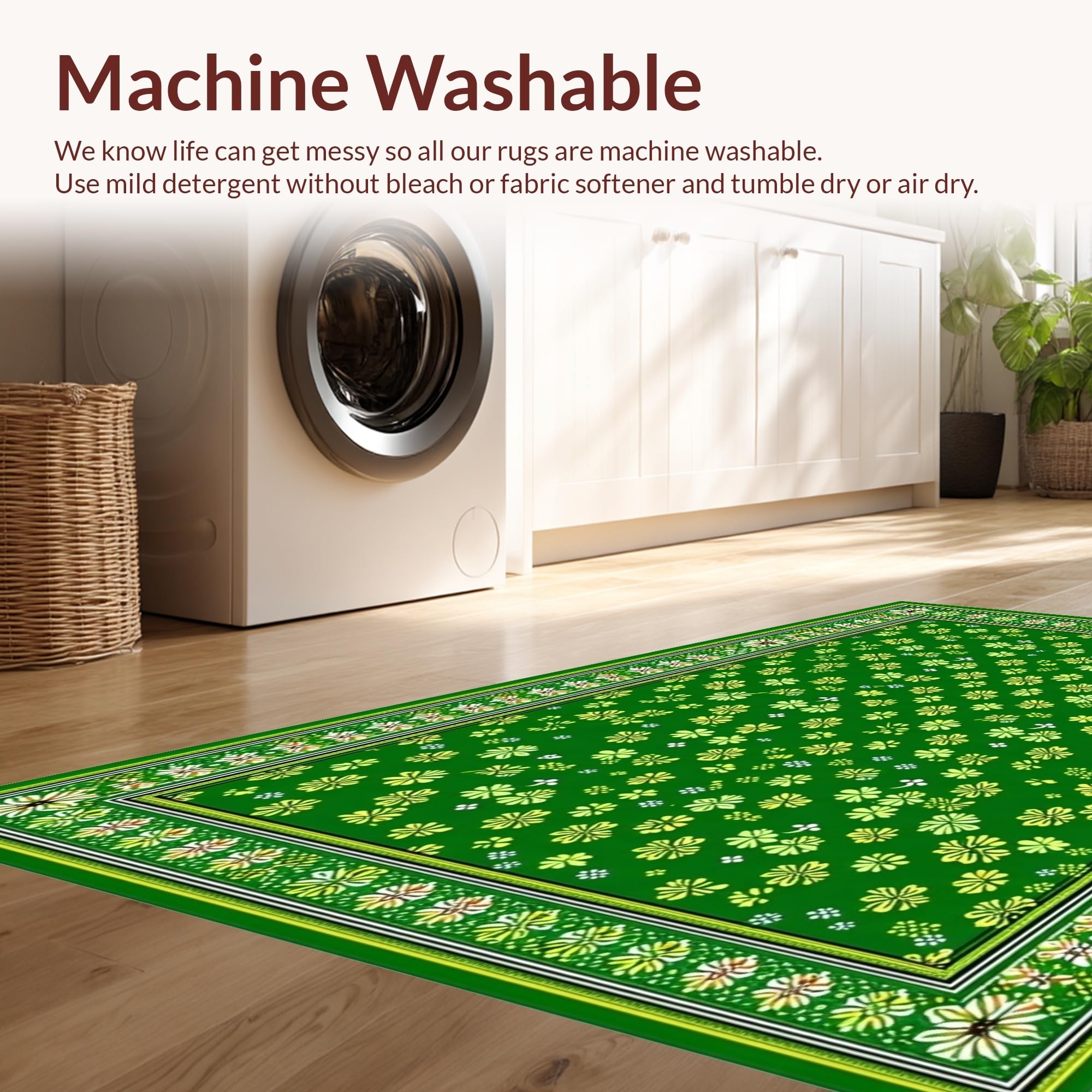 - Machine Washable: Our rugs can be easily thrown in the wash machine.