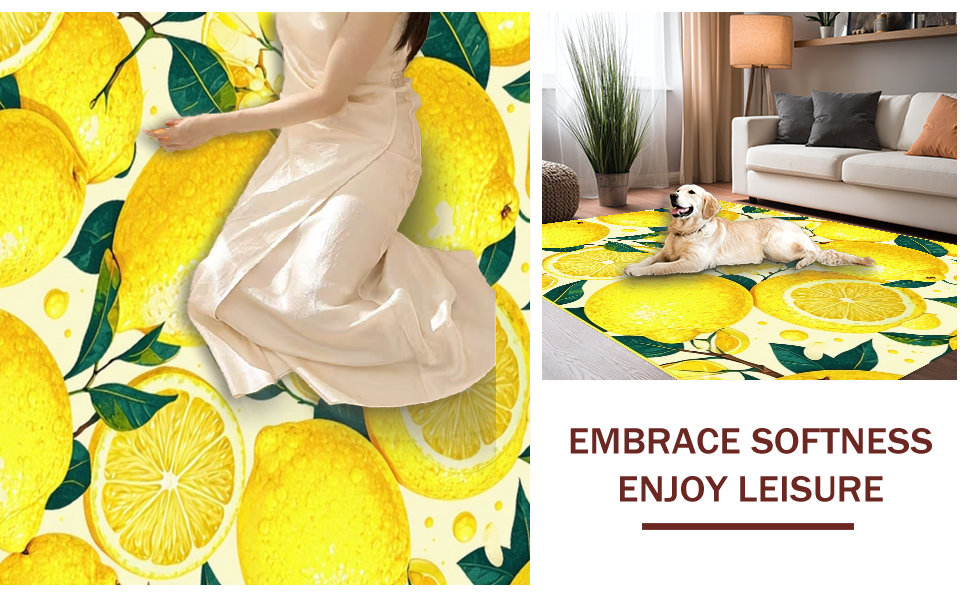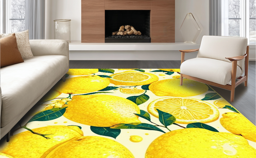 Ultra Soft Area Rug, Non Slip, Stain Resistant, Washable Area Rugs for Living Room, Bedroom, Bright Juicy Citrus Style(Yellow) Overview: