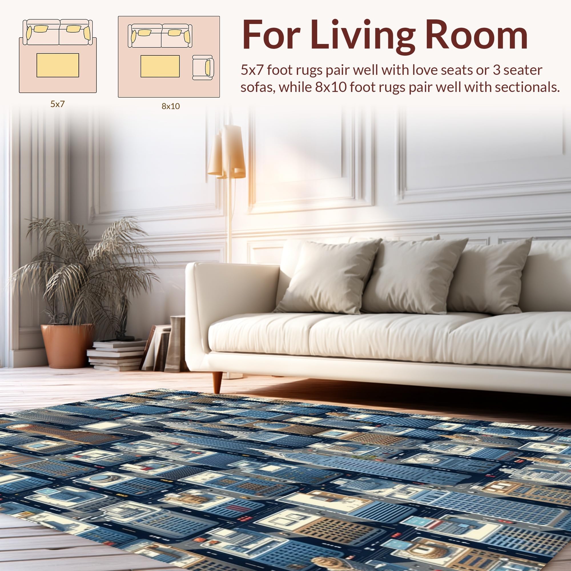 Ultra Soft Area Rug, Non Slip, Stain Resistant, Washable Area Rugs for Living Room, Bedroom, Bright Multicolor Traffic Playmat for Playroom Fun(Blue) Overview: