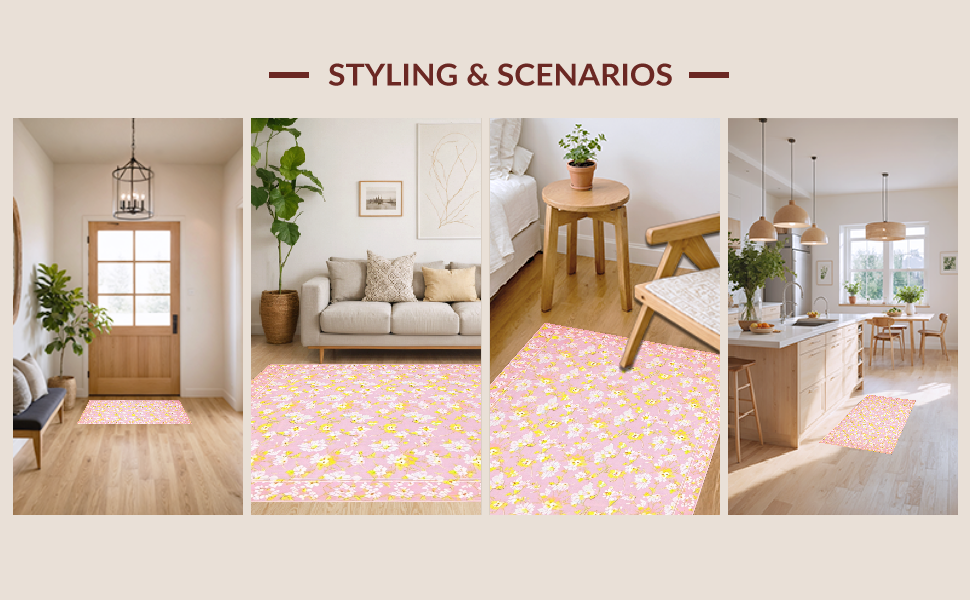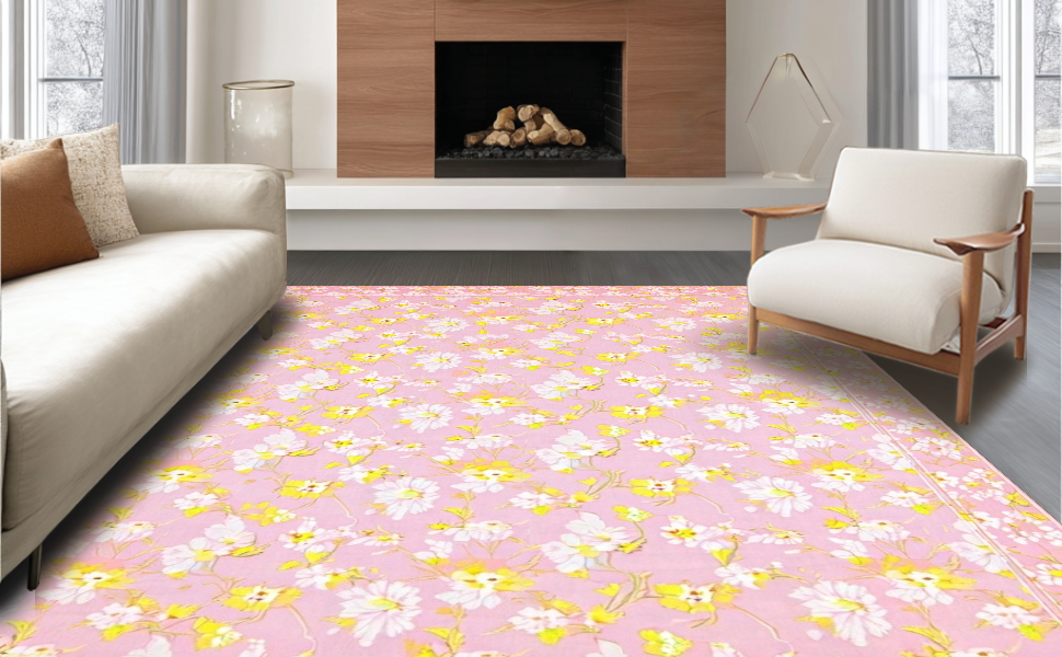 Ultra Soft Area Rug, Non Slip, Stain Resistant, Washable Area Rugs for Living Room, Bedroom, Bright Playful Daisy Motif(Pink) Overview: