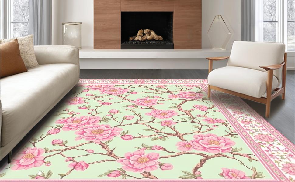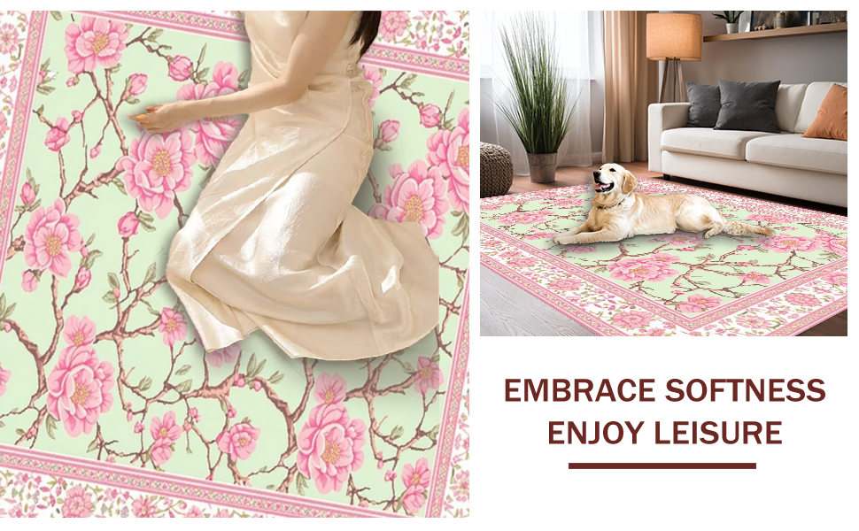 Ultra Soft Area Rug, Non Slip, Stain Resistant, Washable Area Rugs for Living Room, Bedroom, Bright Romantic Petal Pattern(Pink) Overview: