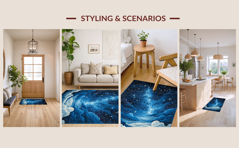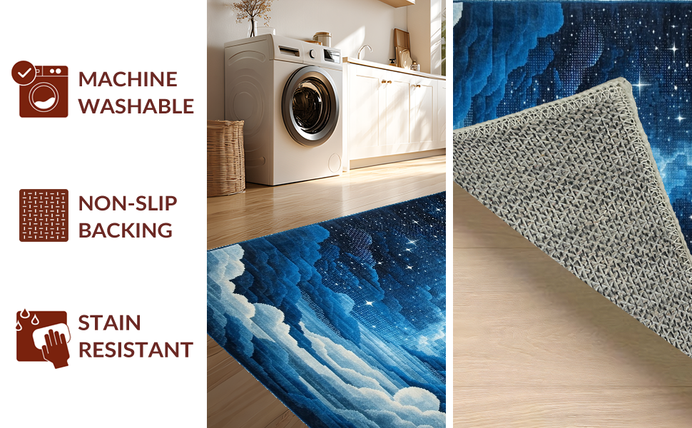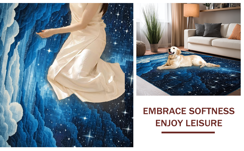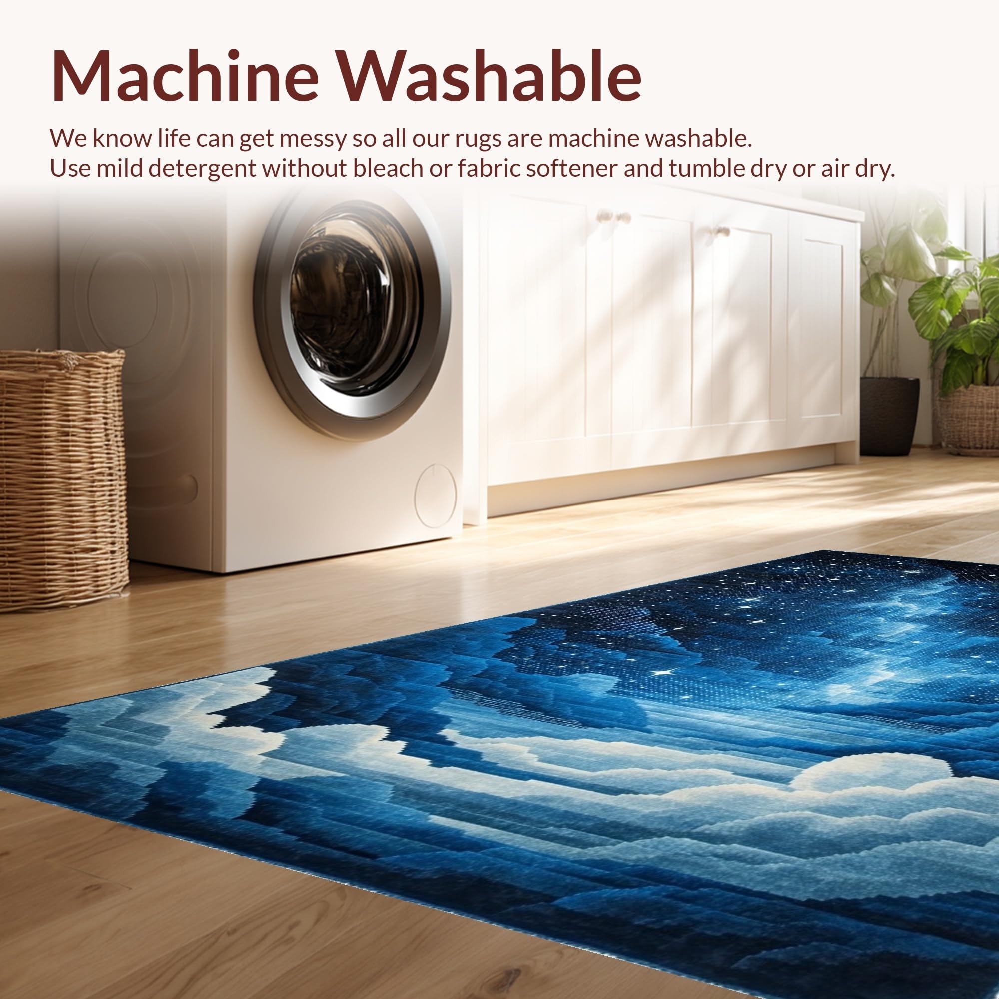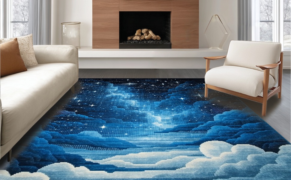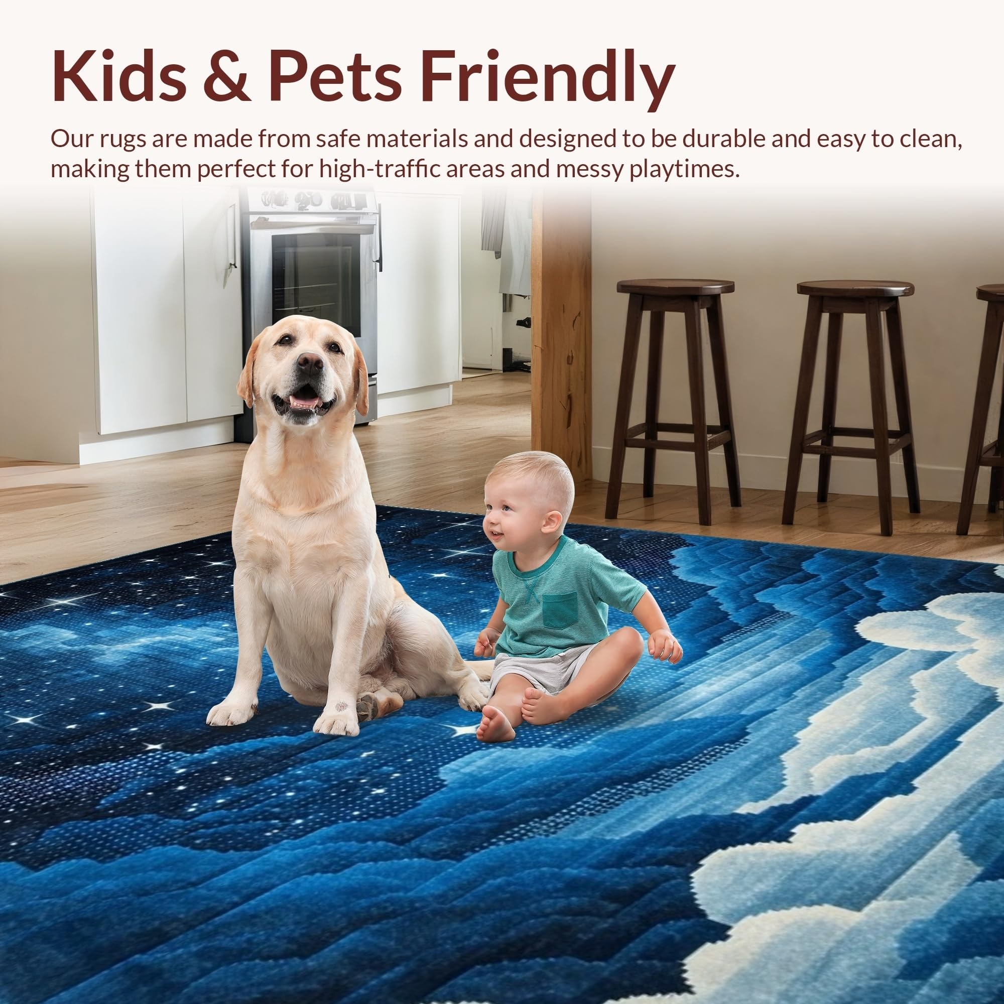 Ultra Soft Area Rug, Non Slip, Stain Resistant, Washable Area Rugs for Living Room, Bedroom, Bright Sky-Themed Playful Rug(Blue) Overview: