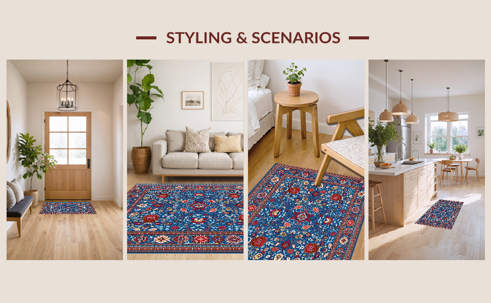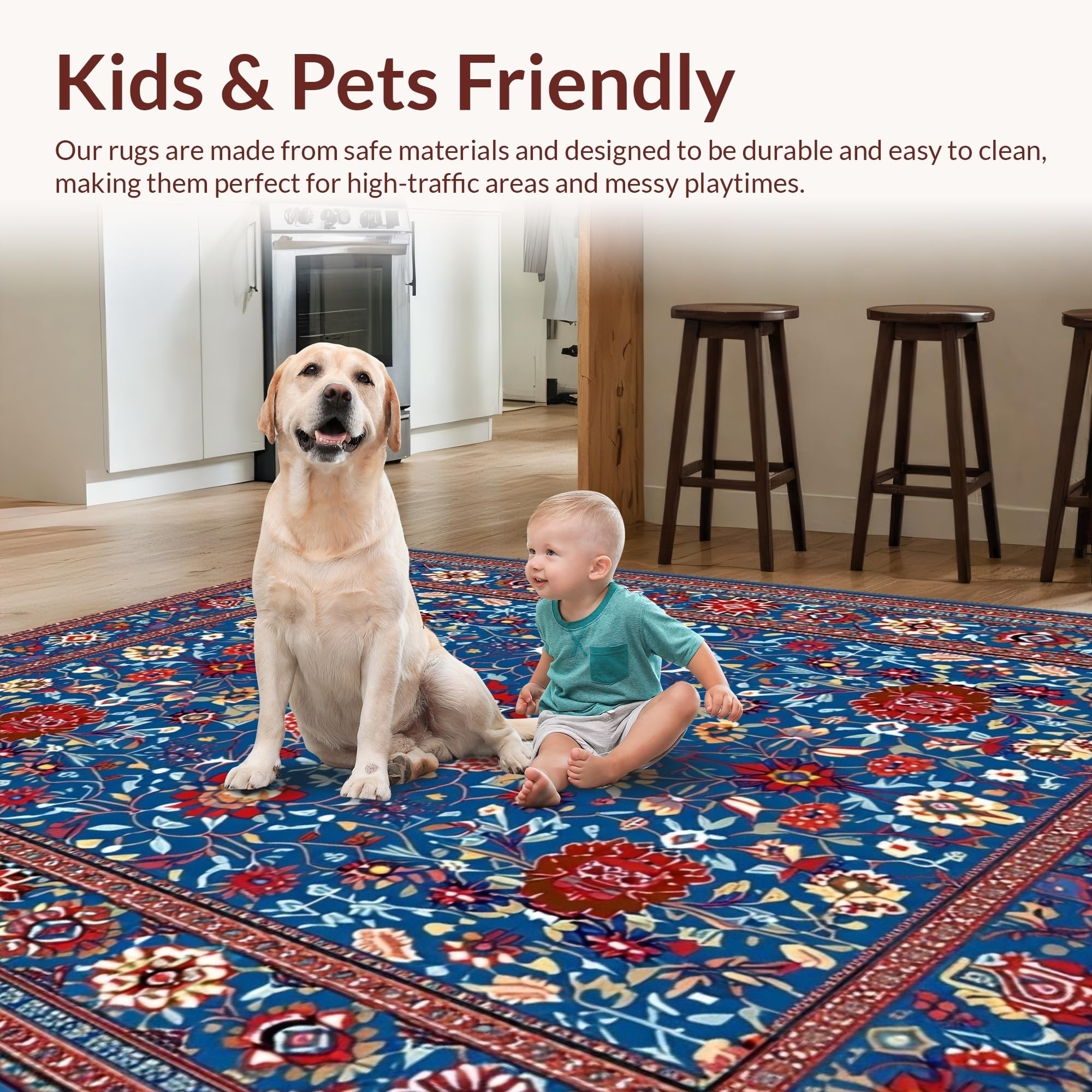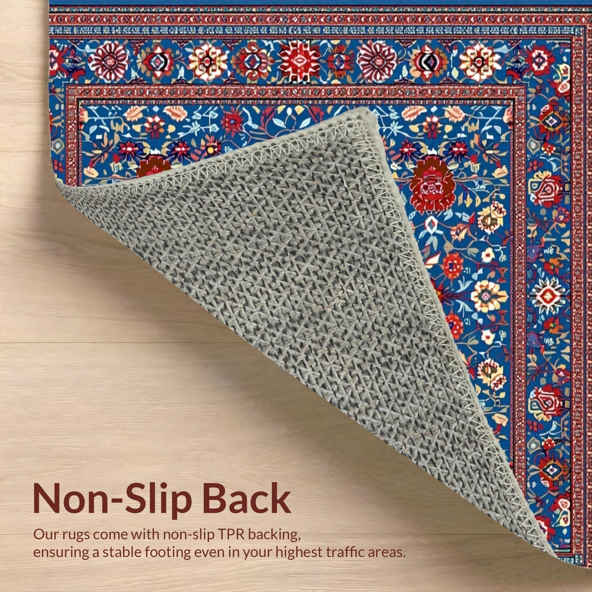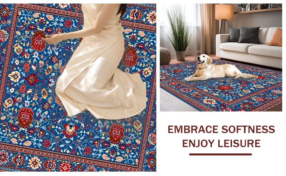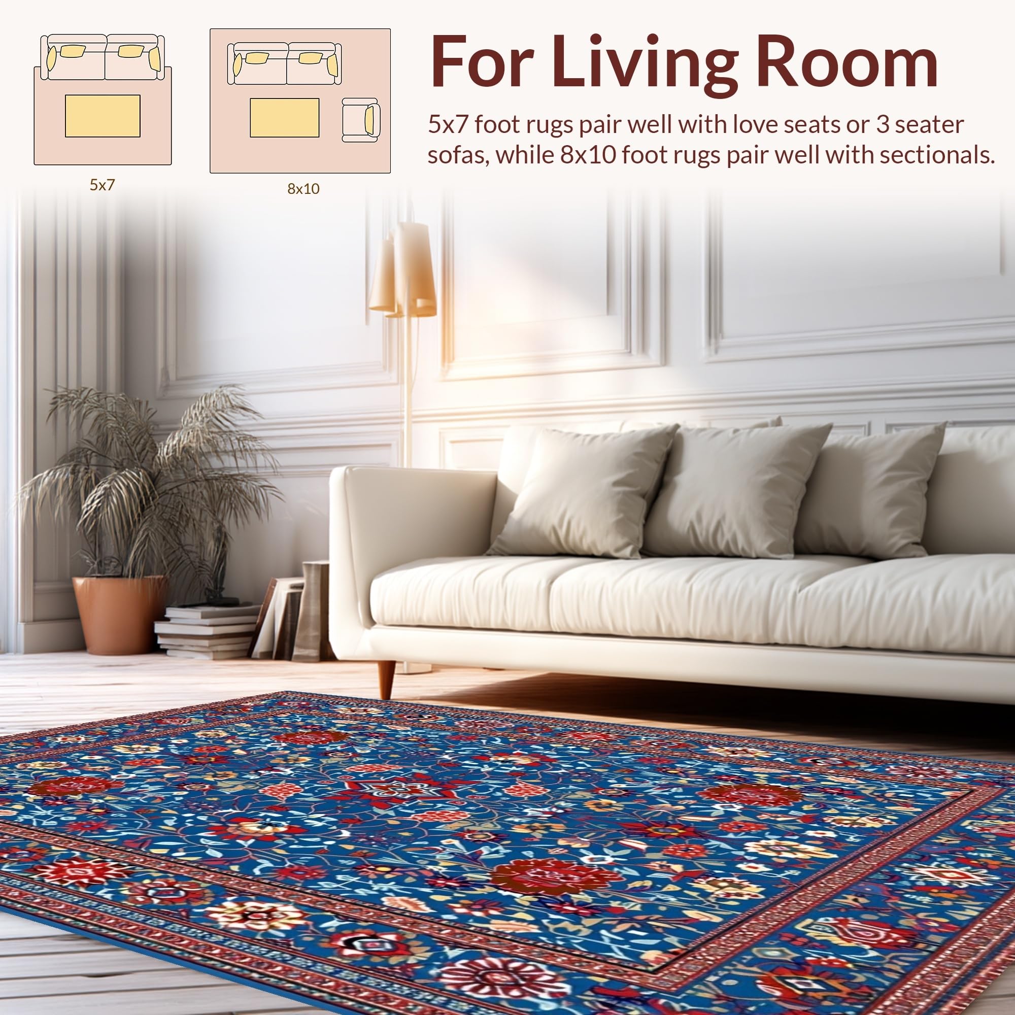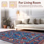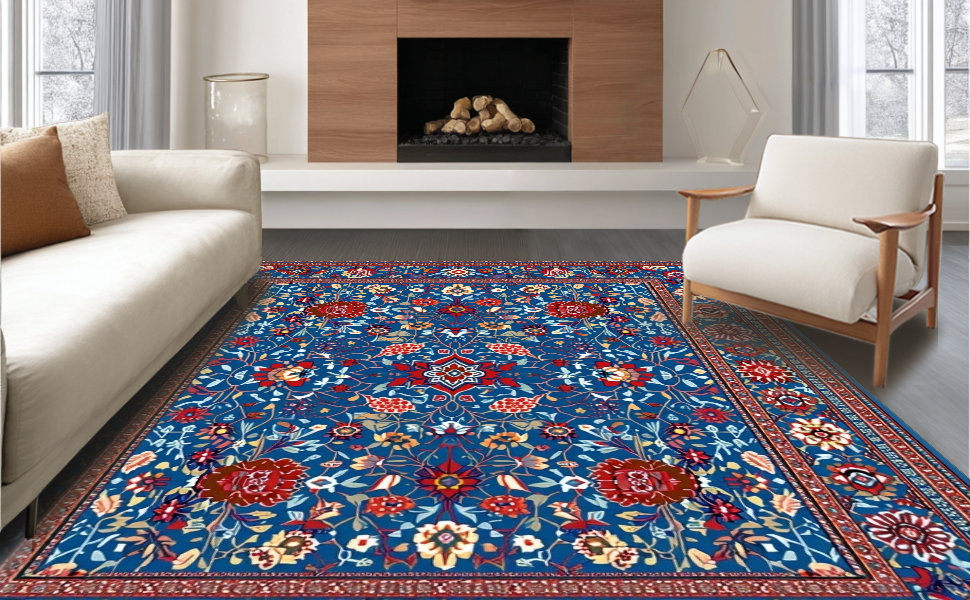 Ultra Soft Area Rug, Non Slip, Stain Resistant, Washable Area Rugs for Living Room, Bedroom, Bright Transitional Nature Inspired Art(Blue) Overview: