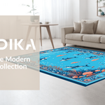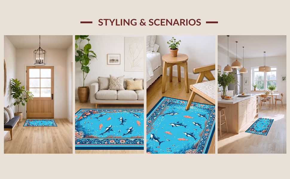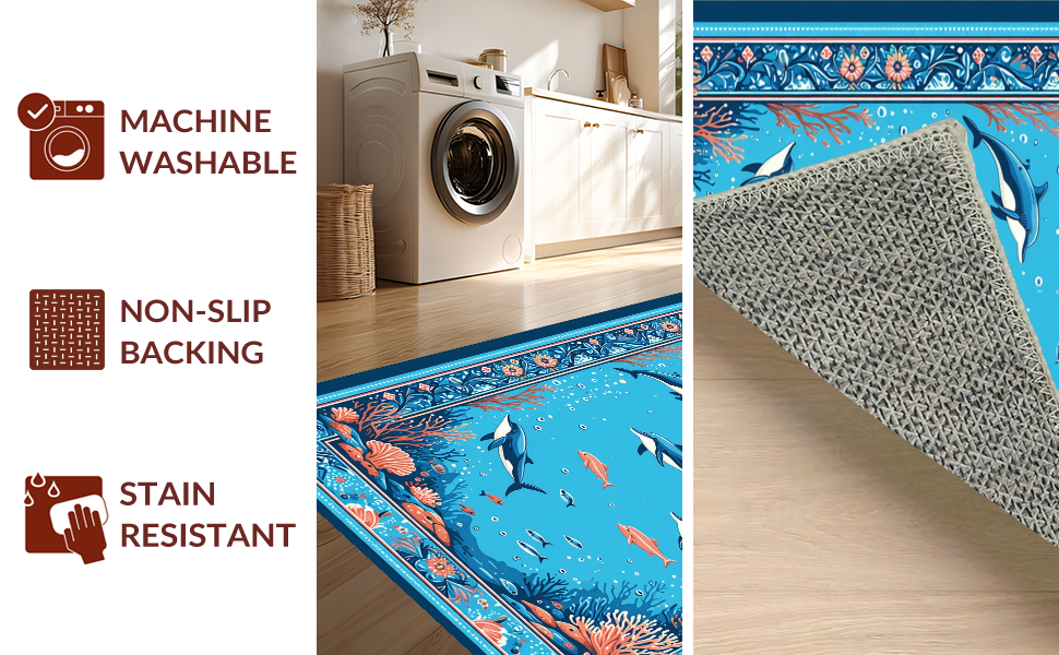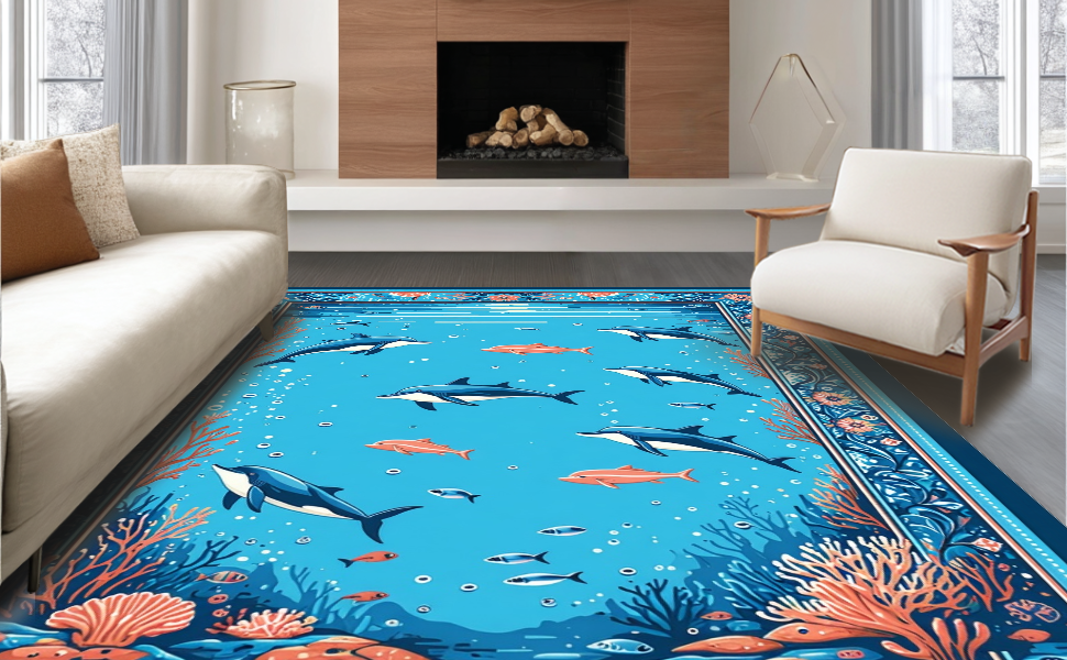 Ultra Soft Area Rug, Non Slip, Stain Resistant, Washable Area Rugs for Living Room, Bedroom, Bright Transitional Seaside Influence(Blue) Overview: