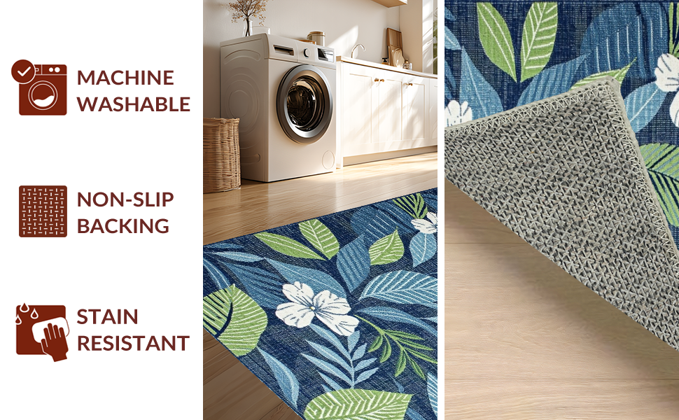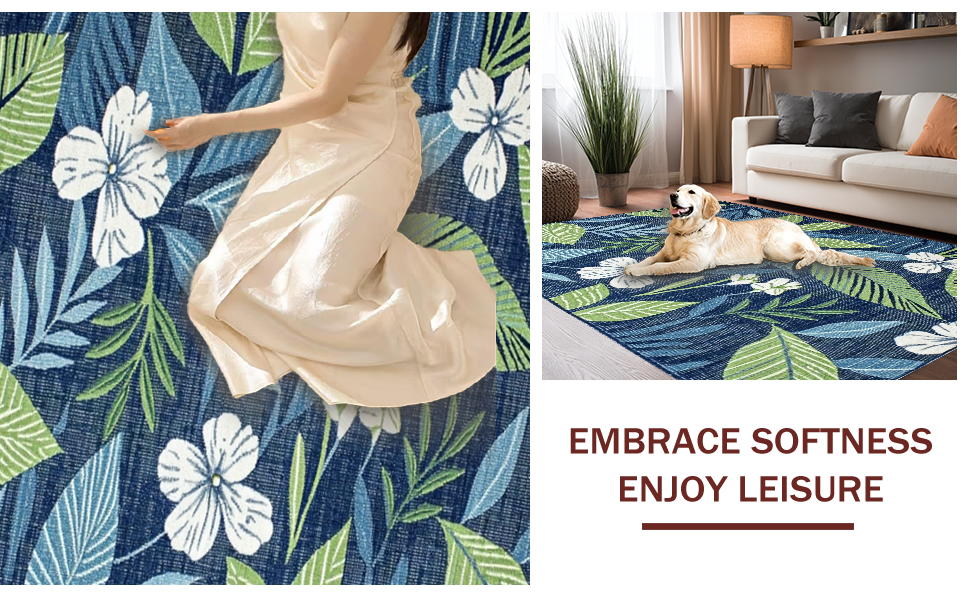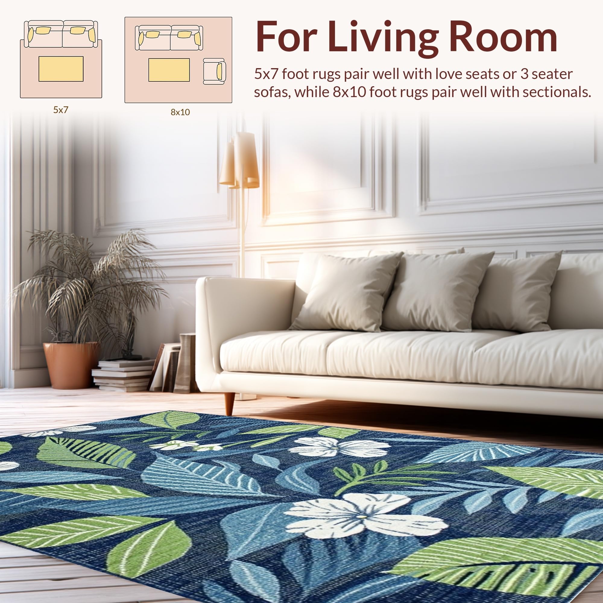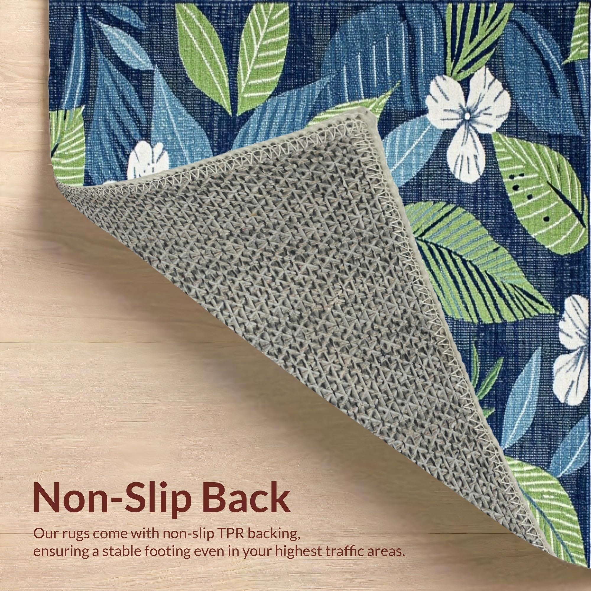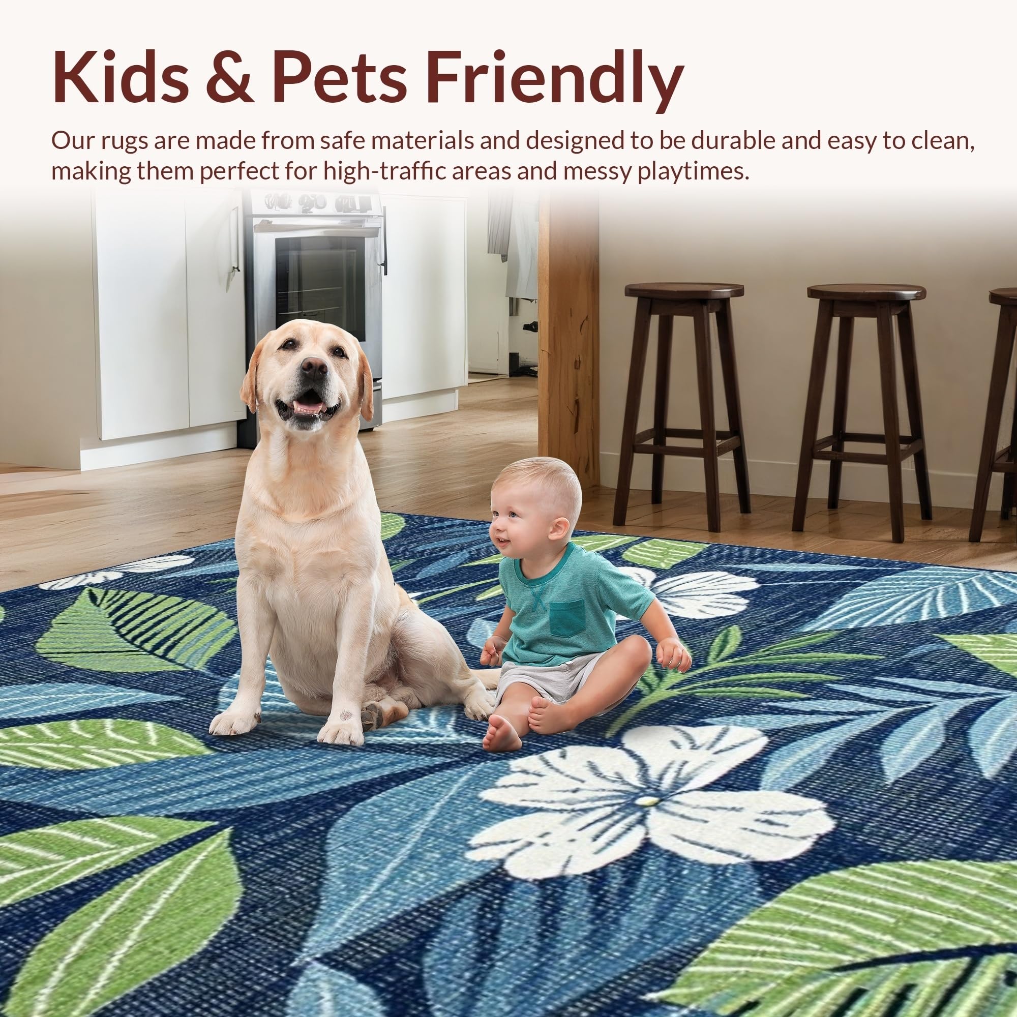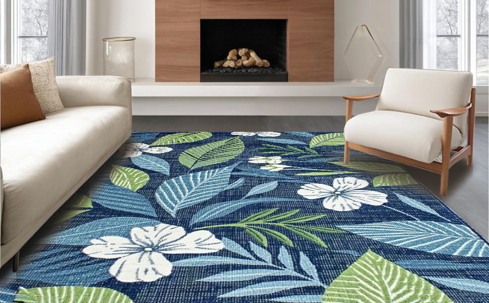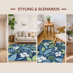 Ultra Soft Area Rug, Non Slip, Stain Resistant, Washable Area Rugs for Living Room, Bedroom, Bright Tropical Leaf Composition(Blue) Overview: