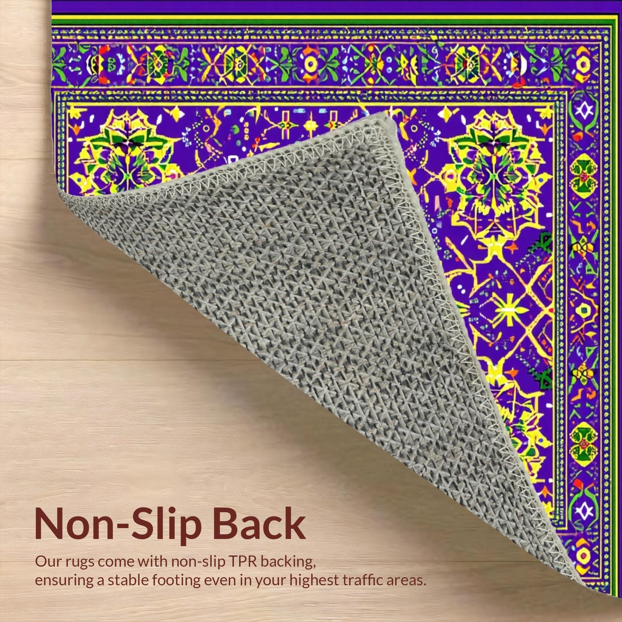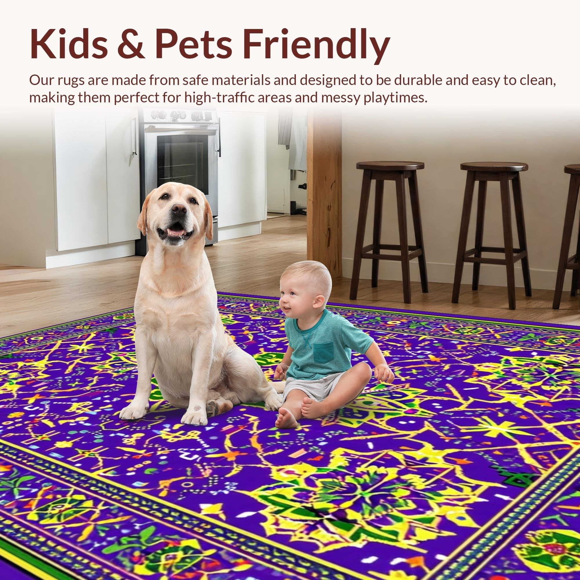 Ultra Soft Area Rug, Non Slip, Stain Resistant, Washable Area Rugs for Living Room, Bedroom, Bright Tropical Tiled Style(Purple) Overview: