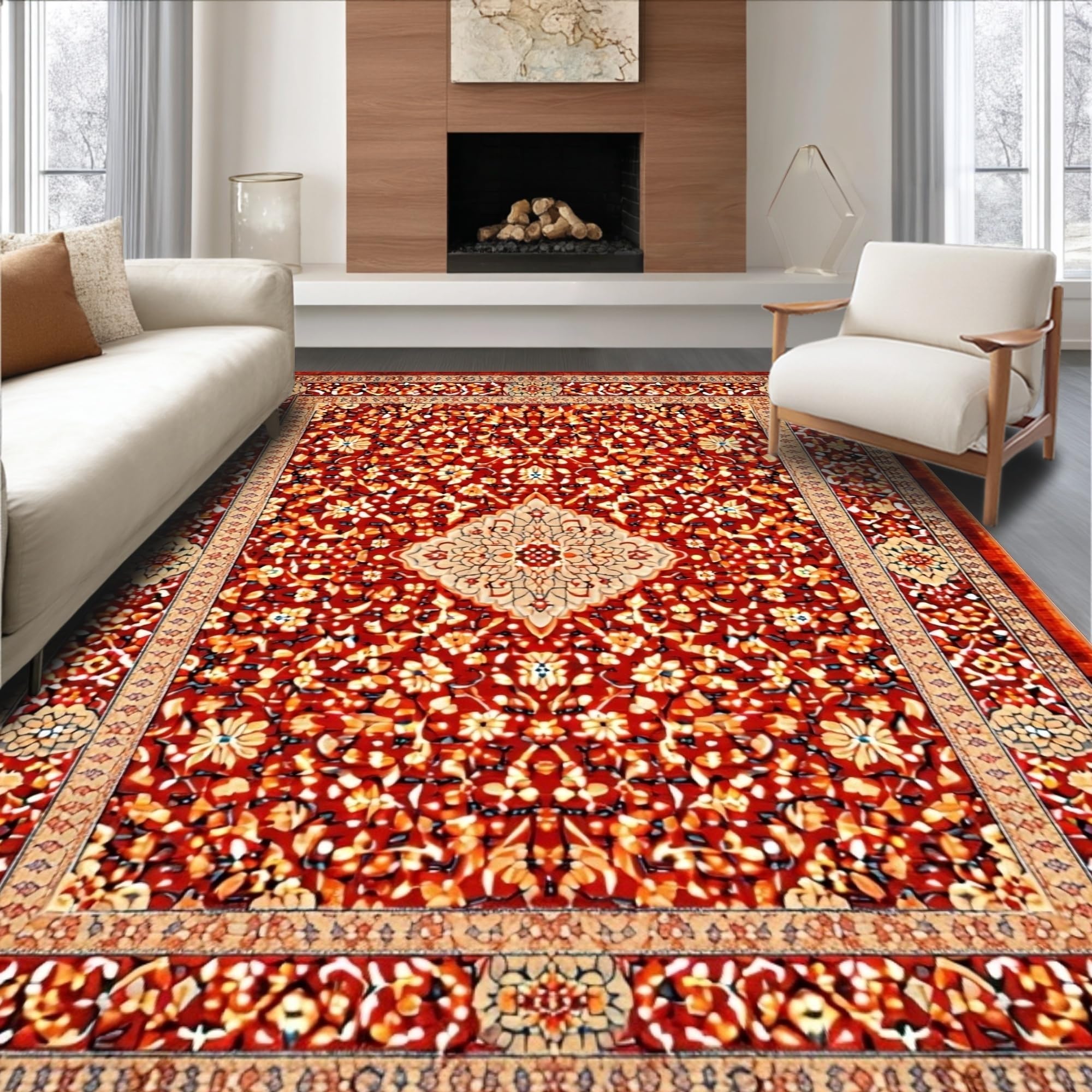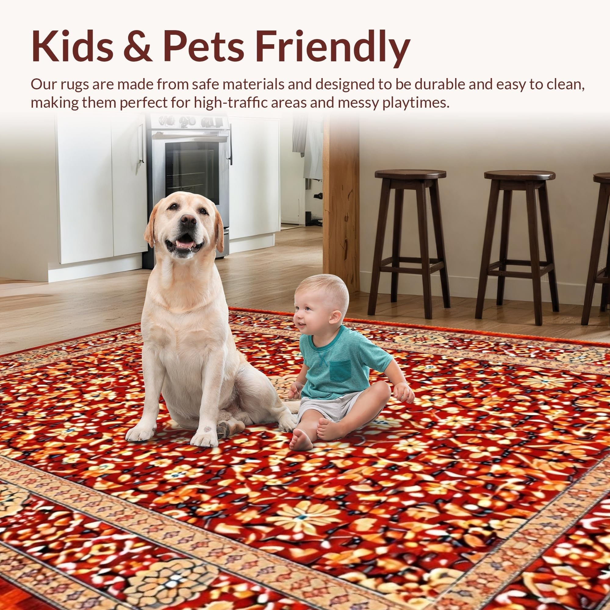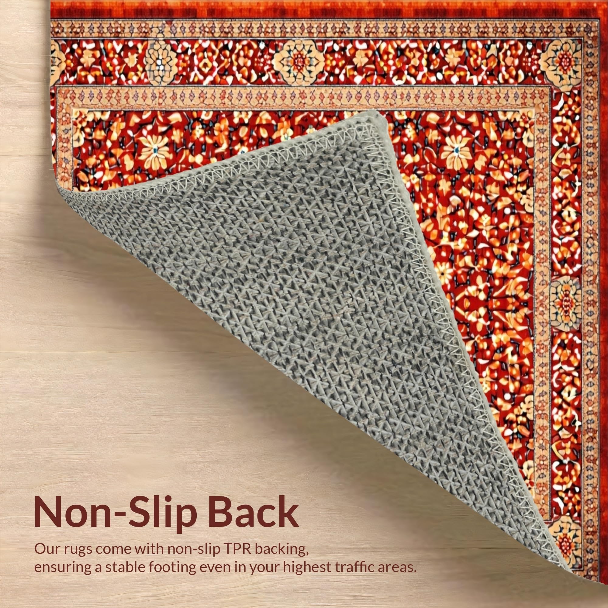 Ultra Soft Area Rug, Non Slip, Stain Resistant, Washable Area Rugs for Living Room, Bedroom, Bright Whimsical Flower Theme(Red) Overview: