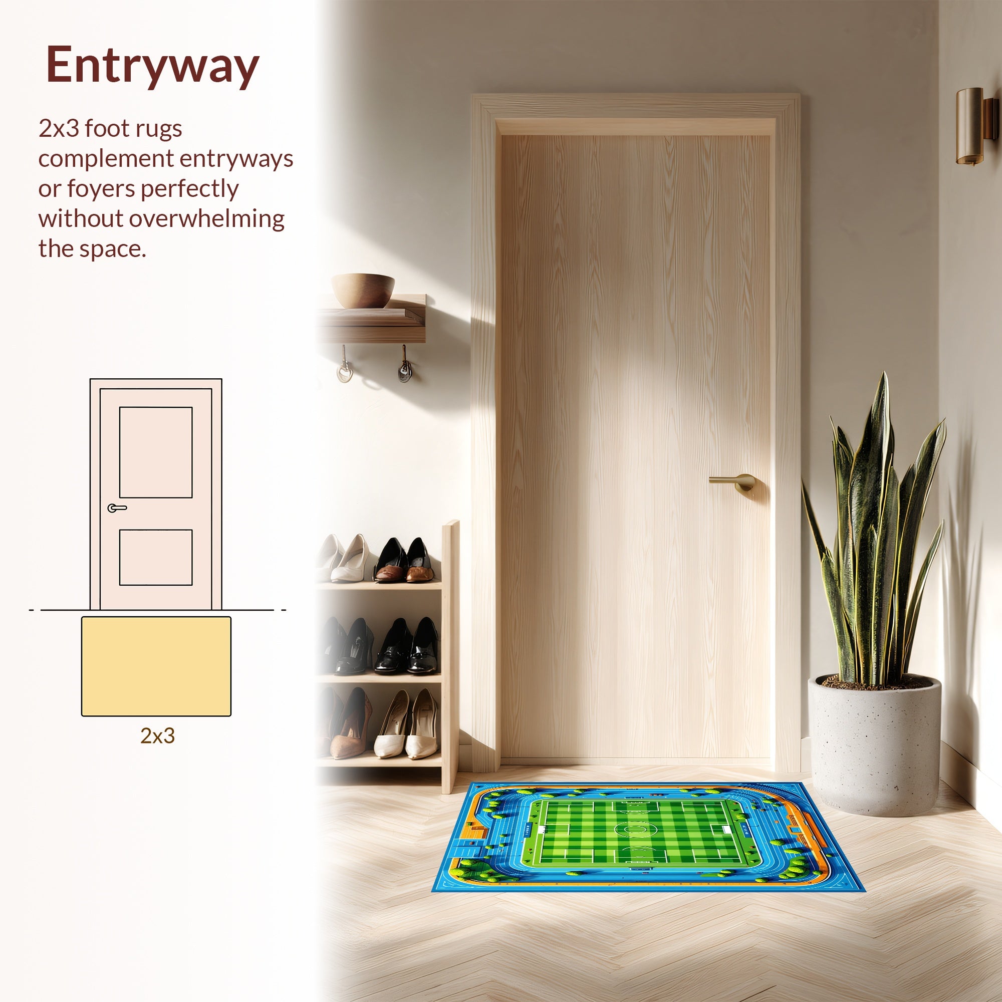 Flatwoven High Traffic Area Rug, Bright Whimsical Layout, Non Slip, Stain Resistant, Washable Area Rugs for Living Room, Bedroom (Green) Overview: