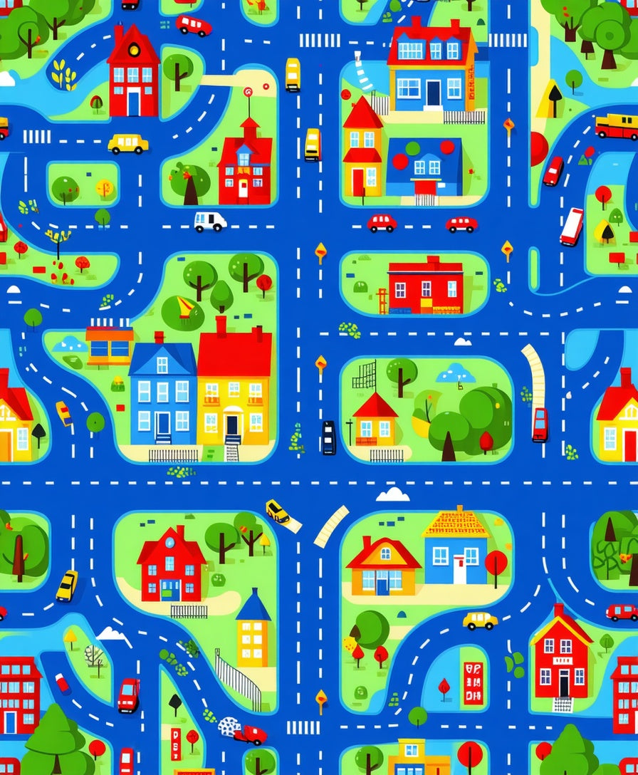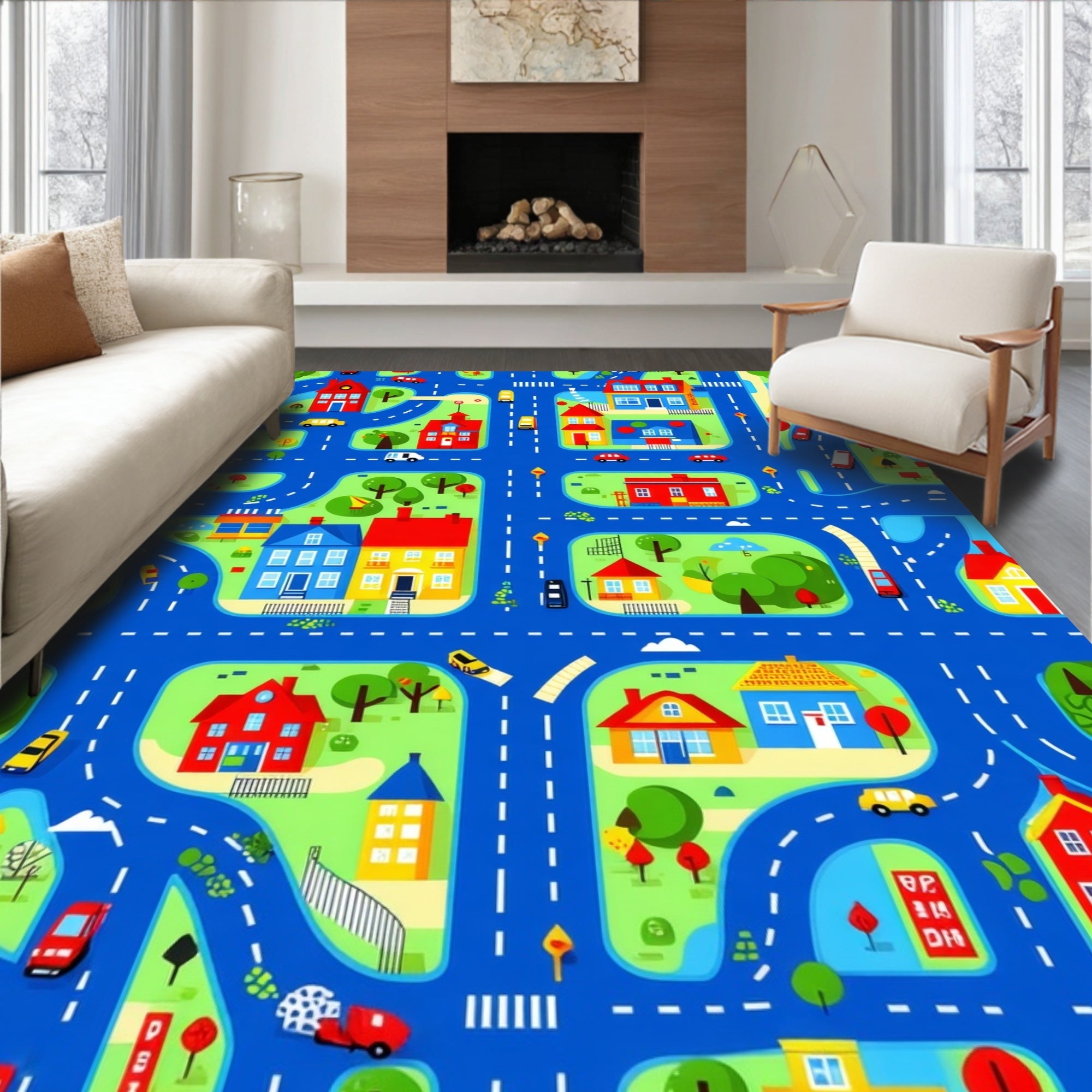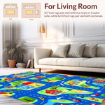 Flatwoven High Traffic Area Rug, Brightly Colored City Journey Canvas, Non Slip, Stain Resistant, Washable Area Rugs for Living Room, Bedroom (Blue) Overview: