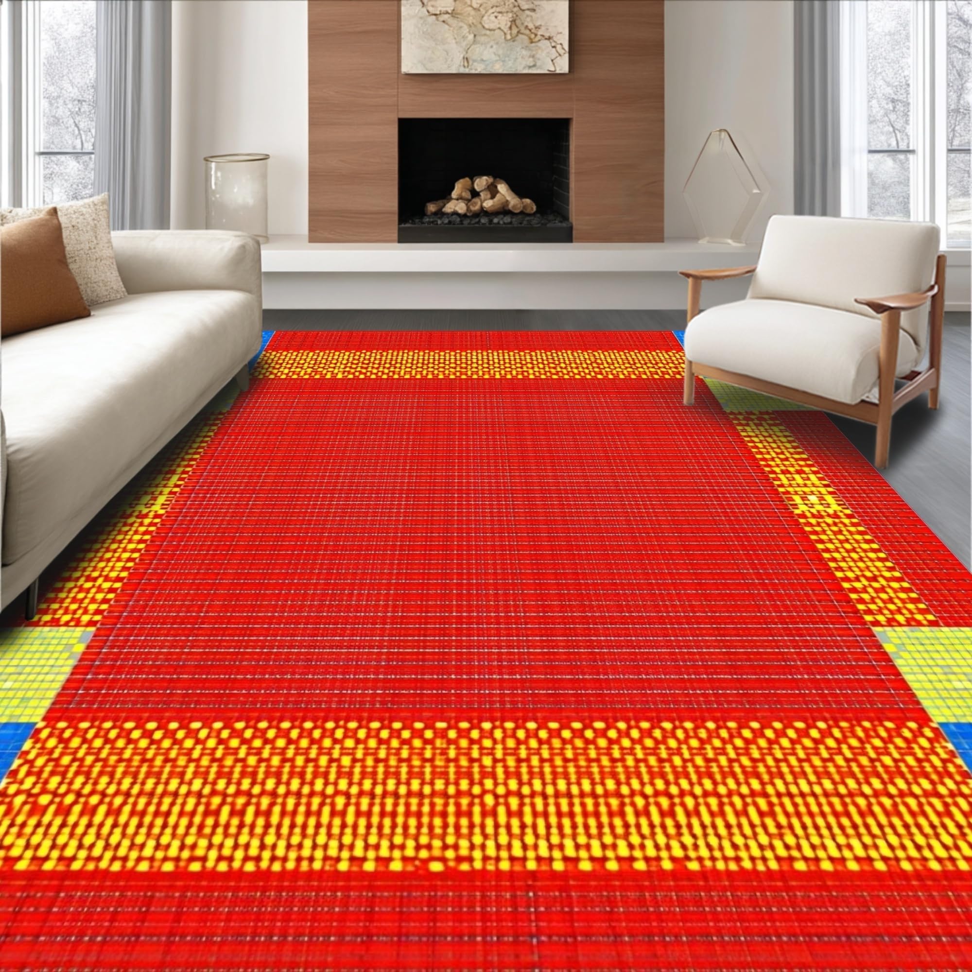 Ultra Soft Area Rug, Non Slip, Stain Resistant, Washable Area Rugs for Living Room, Bedroom, Brightly Colored Contemporary Sensory Mat(Red) Overview: