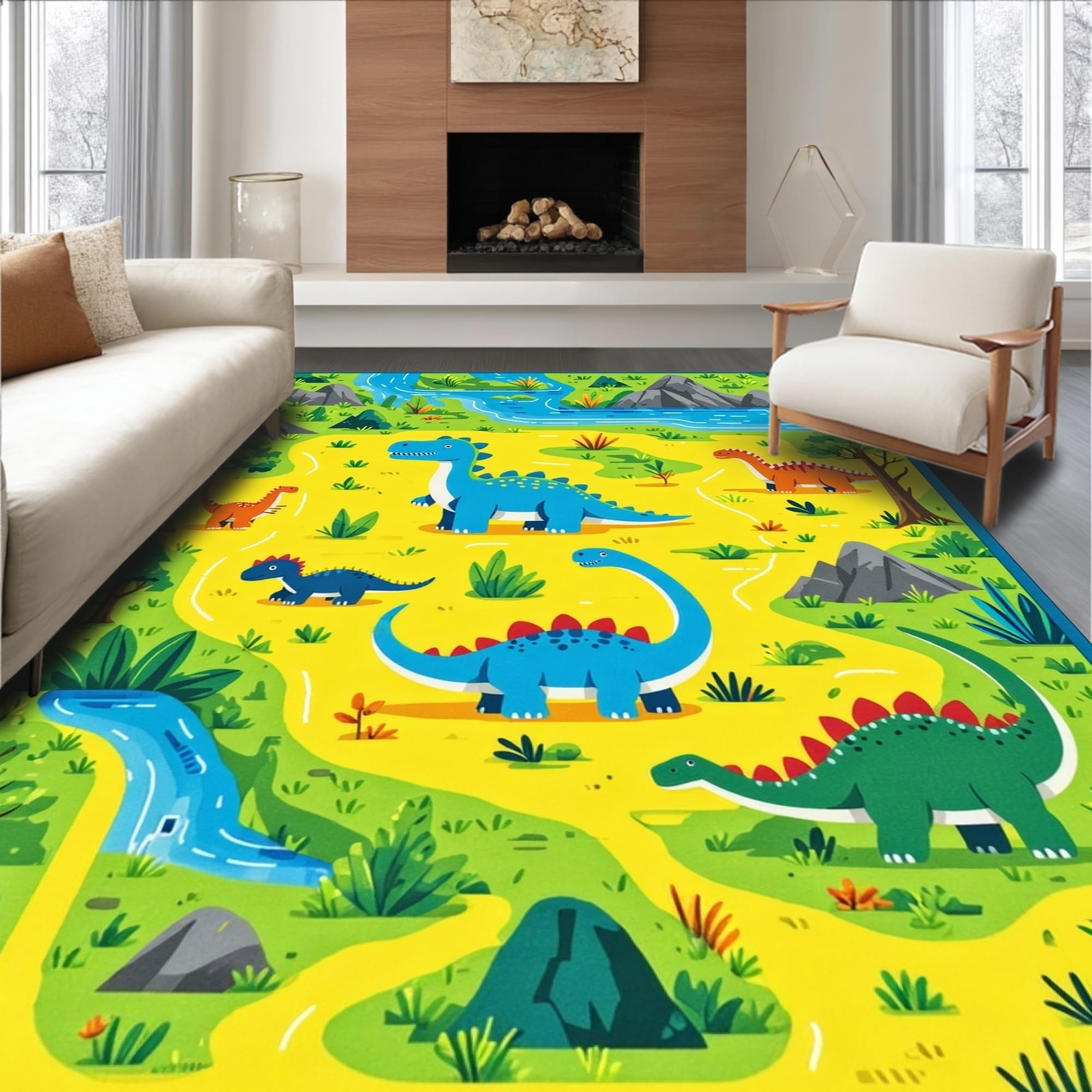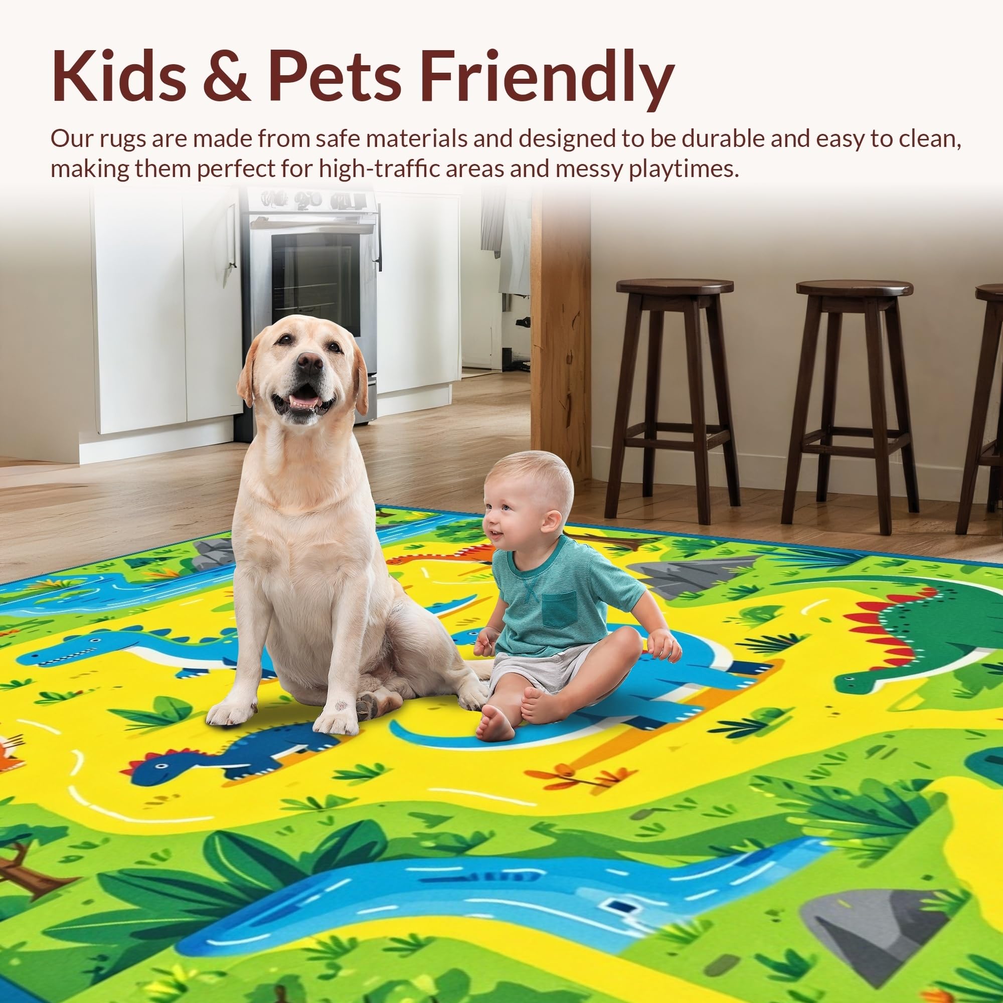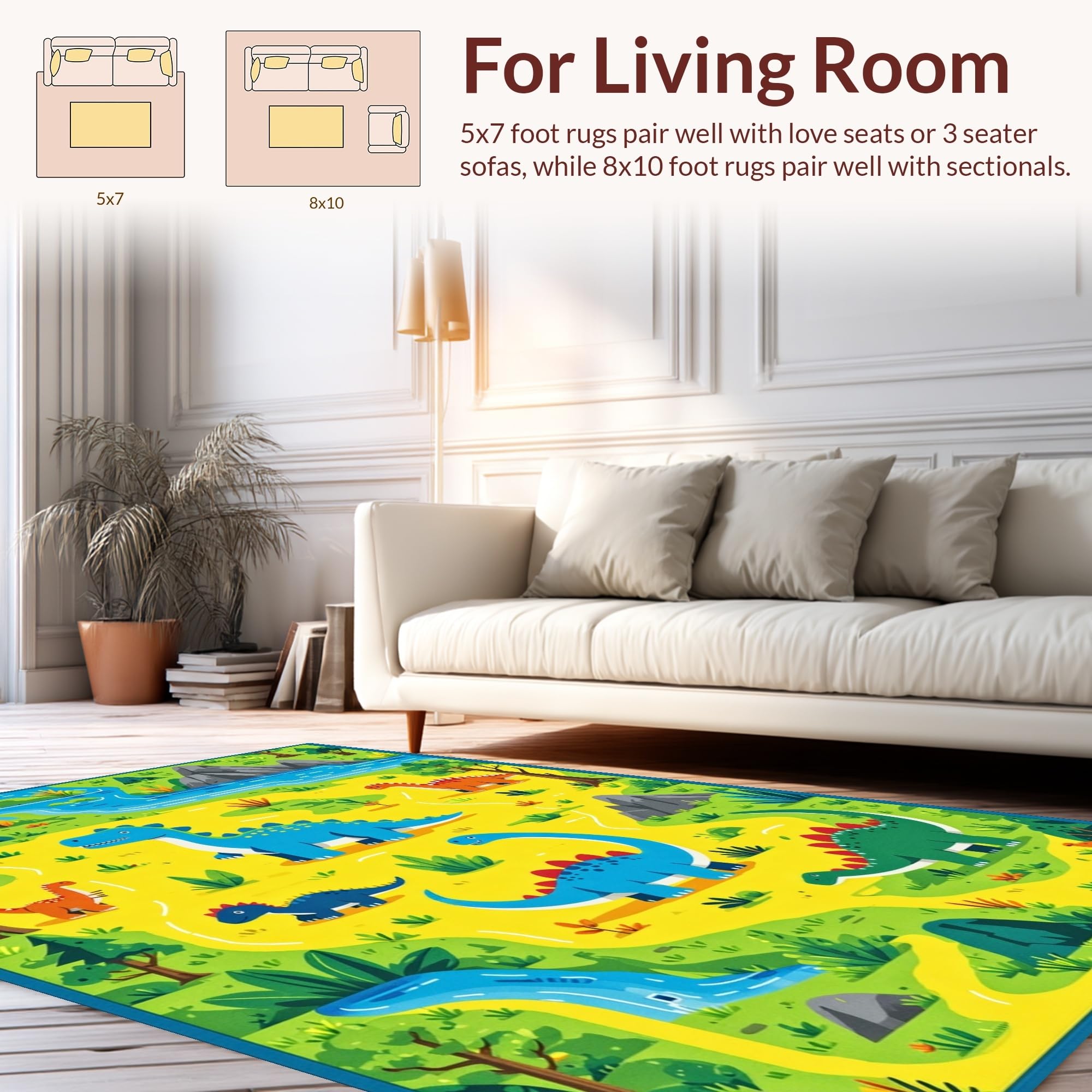 Ultra Soft Area Rug, Non Slip, Stain Resistant, Washable Area Rugs for Living Room, Bedroom, Brightly Colored Fossil Discovery Path(Yellow) Overview: