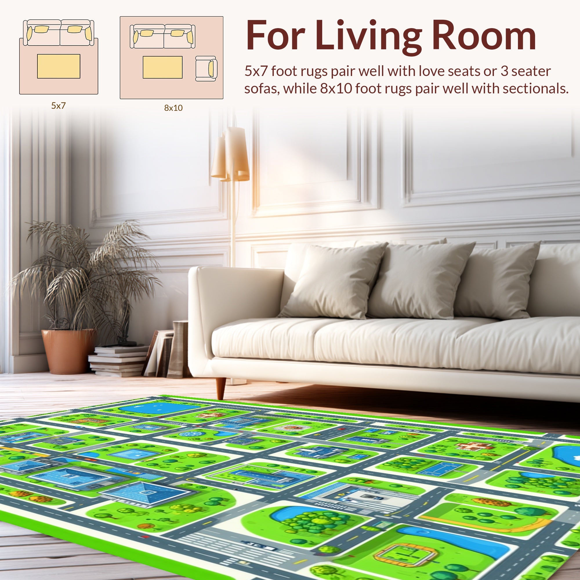 Flatwoven High Traffic Area Rug, Brightly Colored Fun Traffic Play Surface, Non Slip, Stain Resistant, Washable Area Rugs for Living Room, Bedroom (Green) Overview: