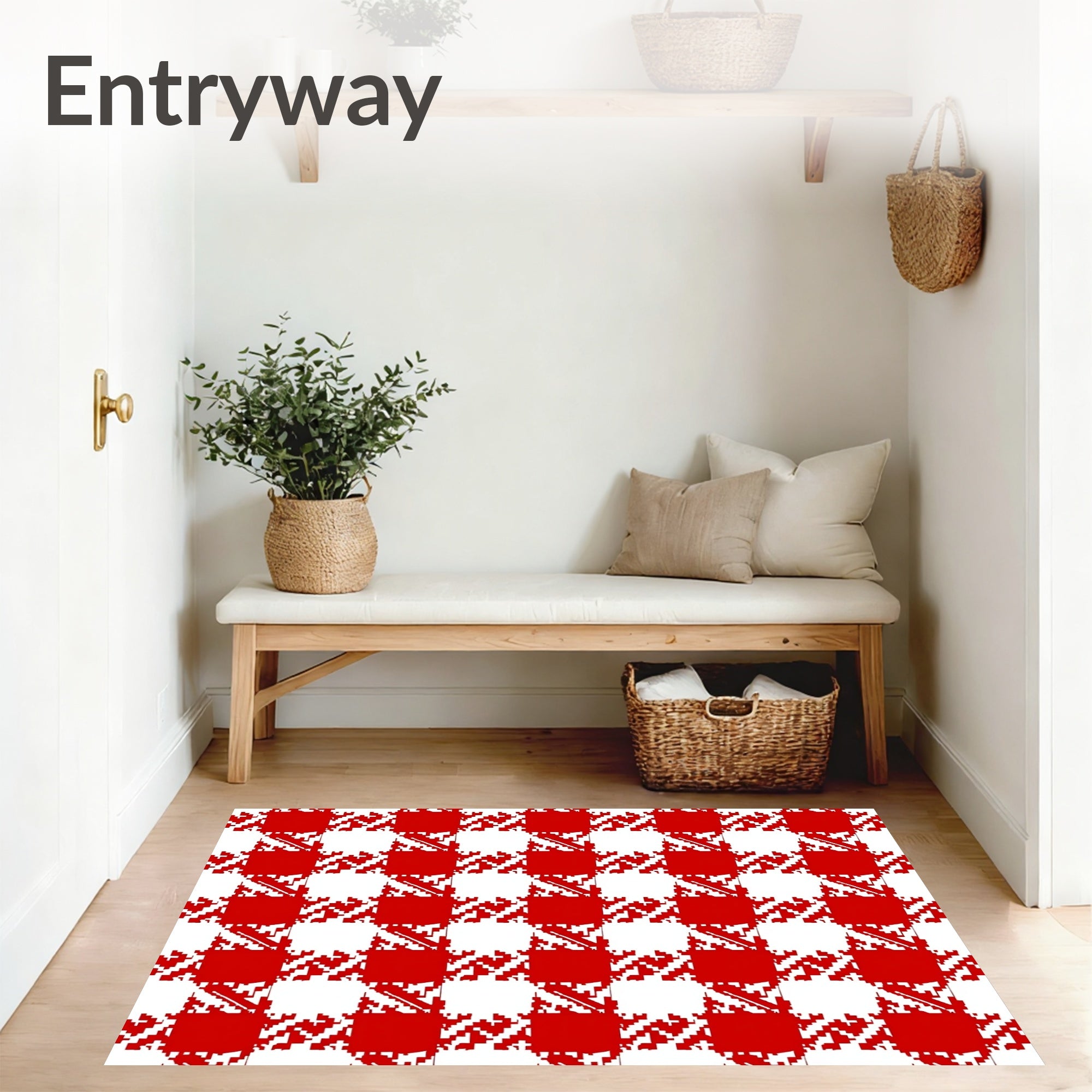 Flatwoven High Traffic Area Rug, Buffalo Check Checkered Traditional Farmhouse Style Accent, Non Slip, Stain Resistant, Washable Area Rugs for Living Room, Bedroom (Red) Overview: