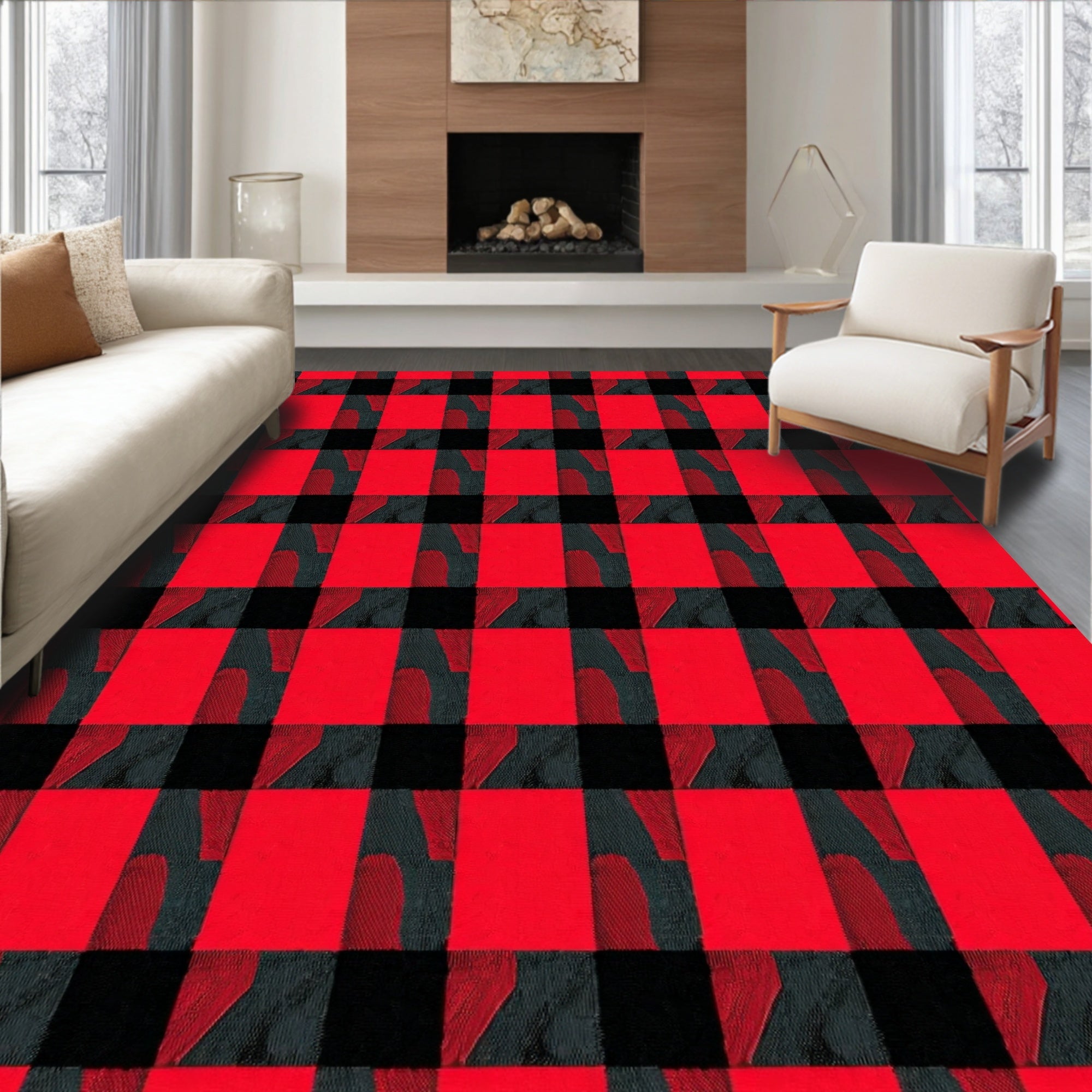 Buffalo Check Decorative Floor with Classic Gingham Design(Red)