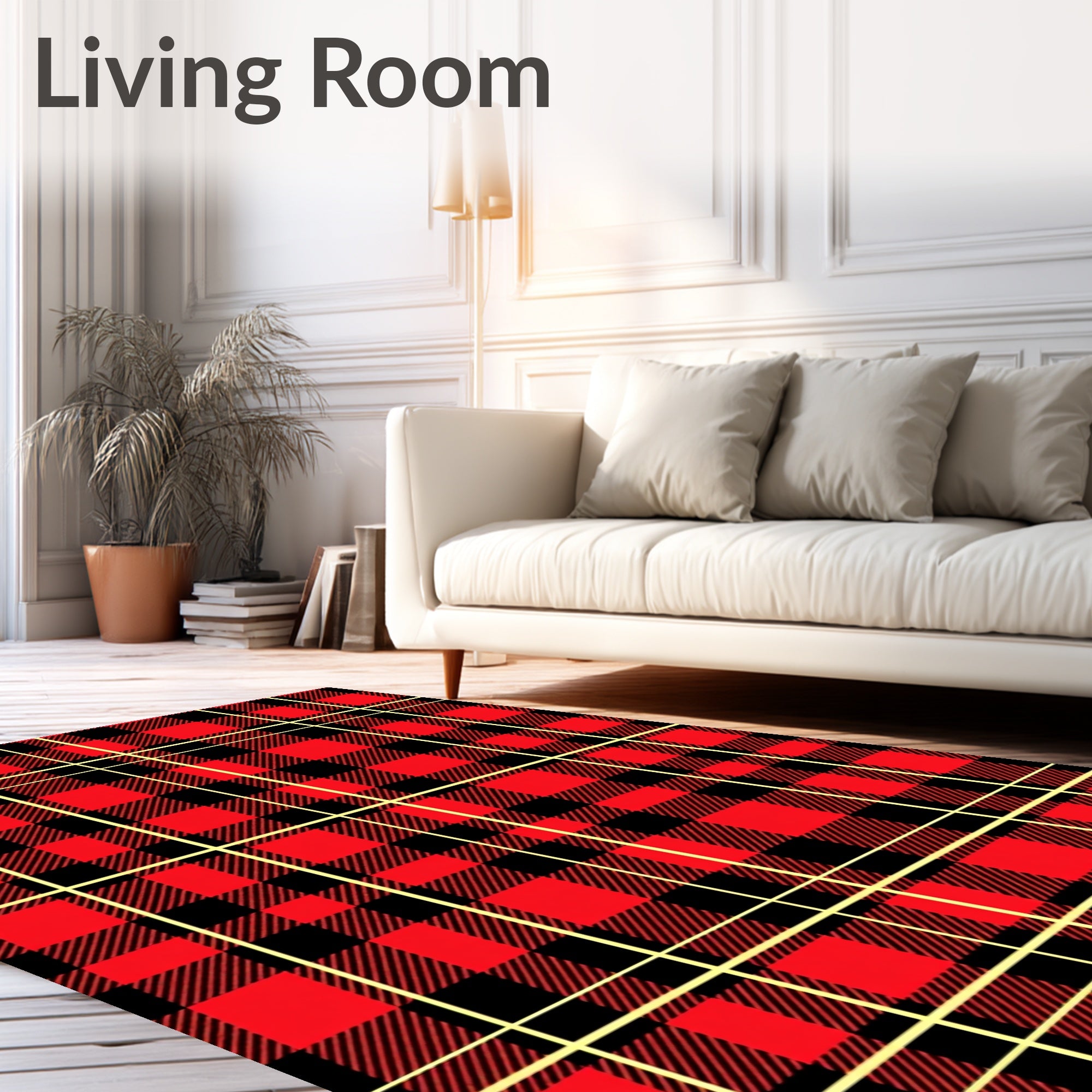 Ultra Soft Area Rug, Non Slip, Stain Resistant, Washable Area Rugs for Living Room, Bedroom, Buffalo Check Heritage with Festive Plaid Accents(Red) Overview: