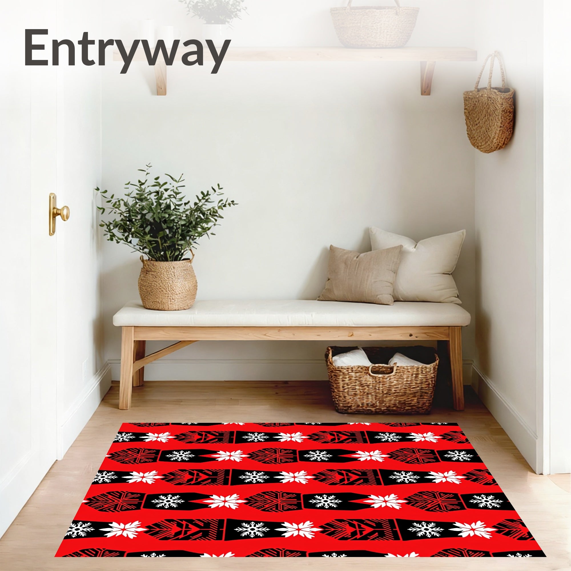 Ultra Soft Area Rug, Non Slip, Stain Resistant, Washable Area Rugs for Living Room, Bedroom, Buffalo Check Holiday Tartan with Snowflake Motifs(Red) Overview: