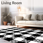 Flatwoven High Traffic Area Rug, Buffalo Checkered Heritage with Nordic Snowflake Accents, Non Slip, Stain Resistant, Washable Area Rugs for Living Room, Bedroom (Black) Overview: