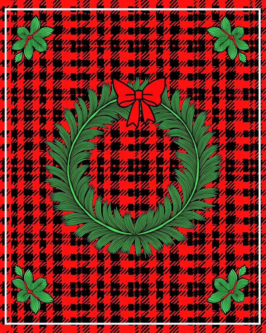 Buffalo Checkered Pine Wreath Motif Festive Plaid Design(Red)