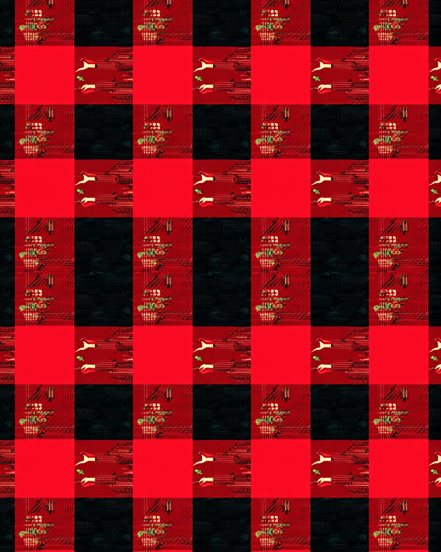 Buffalo Checkered Stripe Accent with Festive Pinecone Motifs(Red)