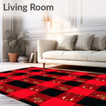 Ultra Soft Area Rug, Non Slip, Stain Resistant, Washable Area Rugs for Living Room, Bedroom, Buffalo Checkered Stripe Accent with Festive Pinecone Motifs(Red) Overview: