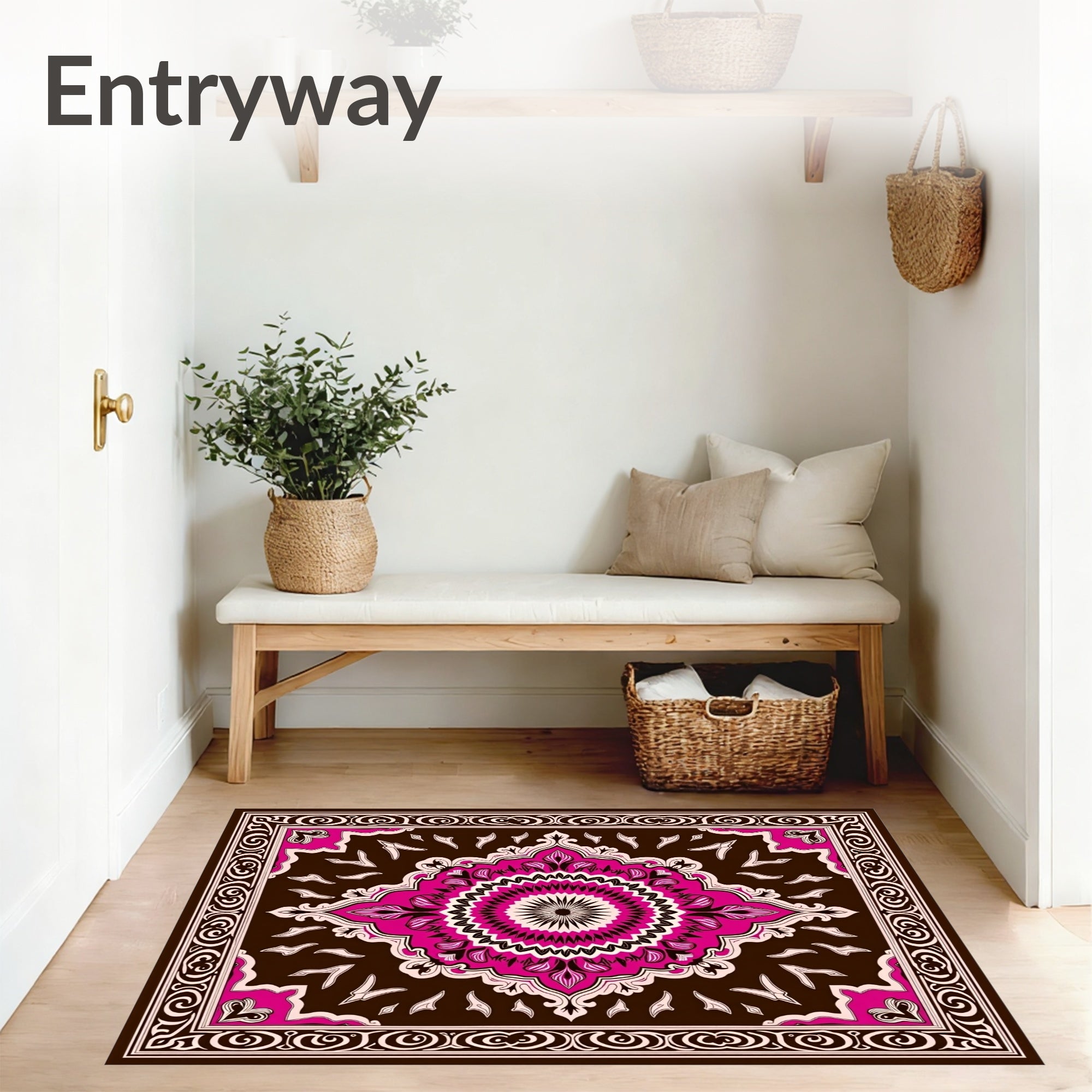 Burst Decorative Floor Covering with Intricate Floral Motifs(Brown)