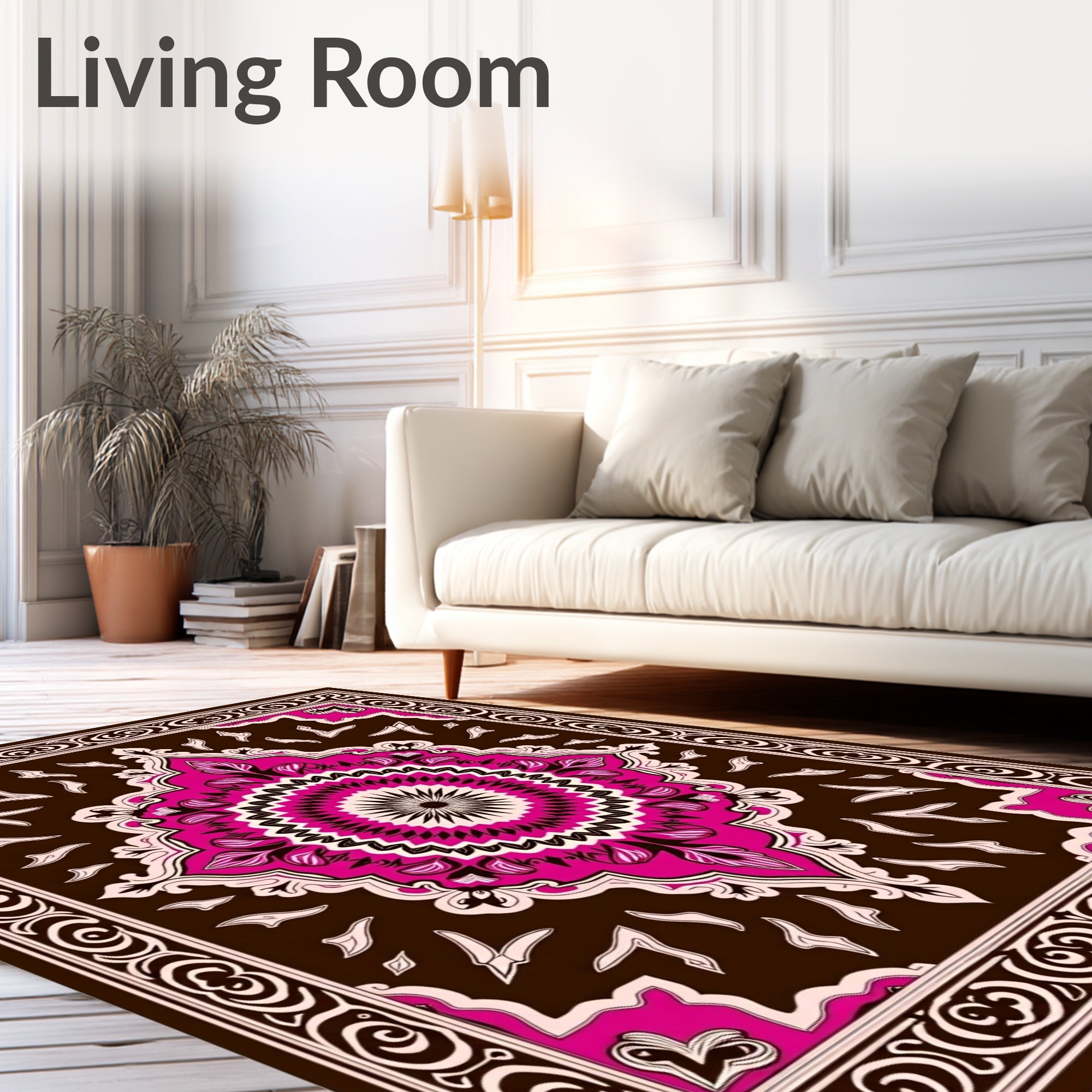 Flatwoven High Traffic Area Rug, Burst Decorative Floor Covering with Intricate Floral Motifs, Non Slip, Stain Resistant, Washable Area Rugs for Living Room, Bedroom (Brown) Overview: