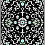 Ultra Soft Area Rug, Non Slip, Stain Resistant, Washable Area Rugs for Living Room, Bedroom, Byzantine Palace Vinework with Inspired Floral Scrolls(Black) Overview: