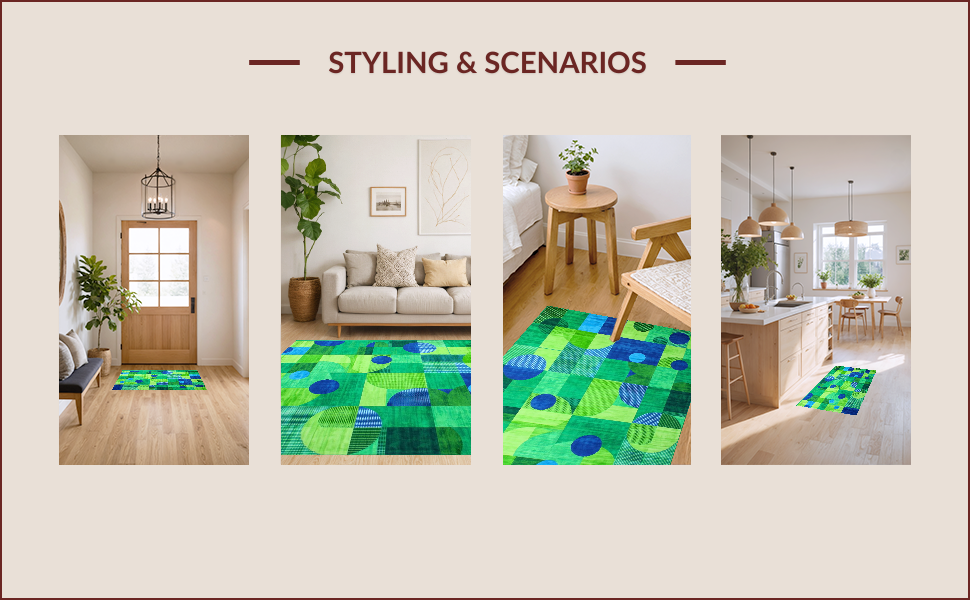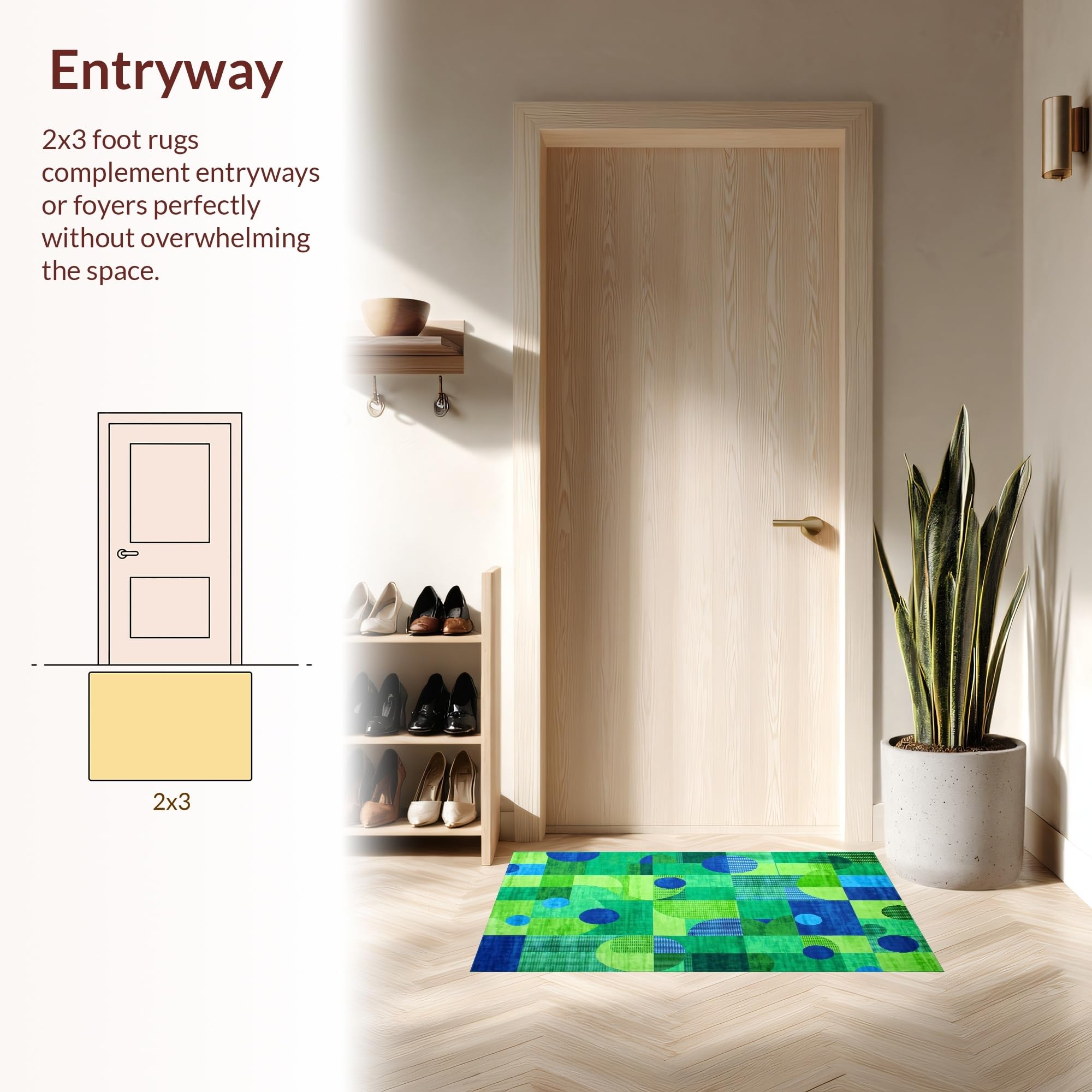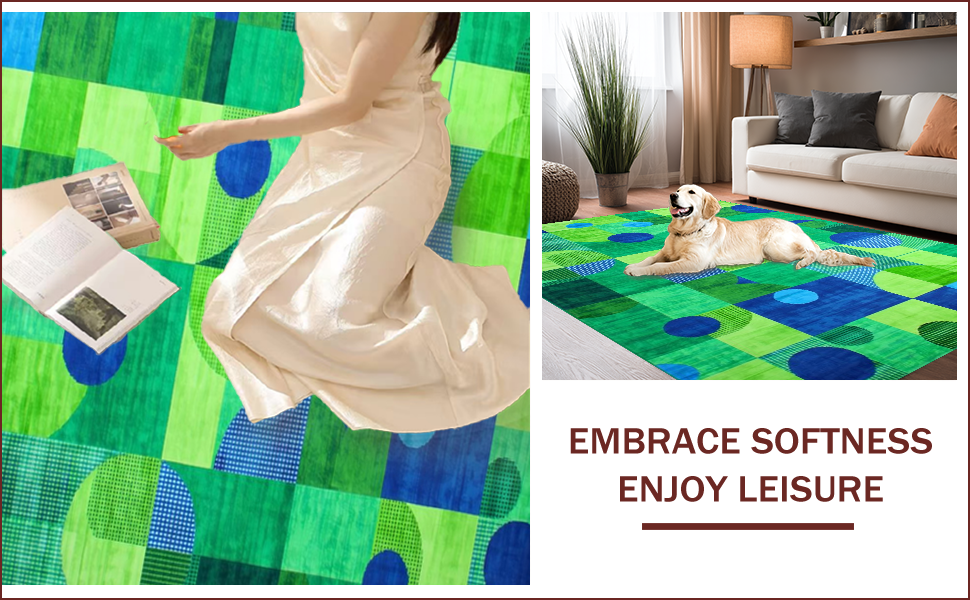 Ultra Soft Area Rug, Non Slip, Stain Resistant, Washable Area Rugs for Living Room, Bedroom, Calming Blue and White Nature Pattern(Green) Overview: