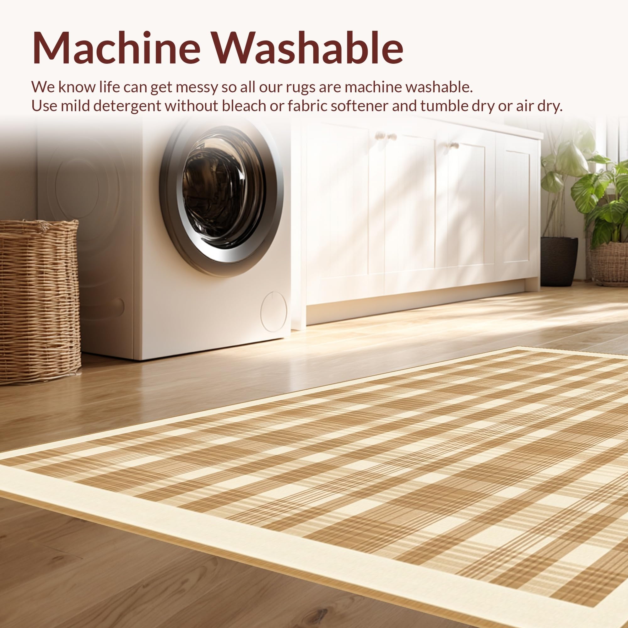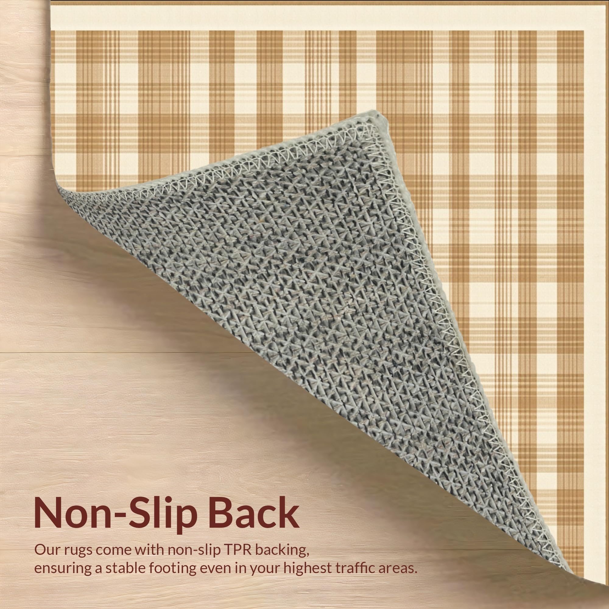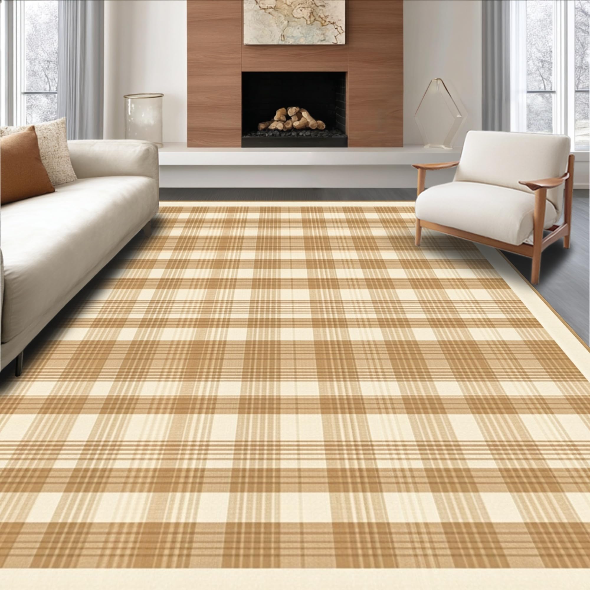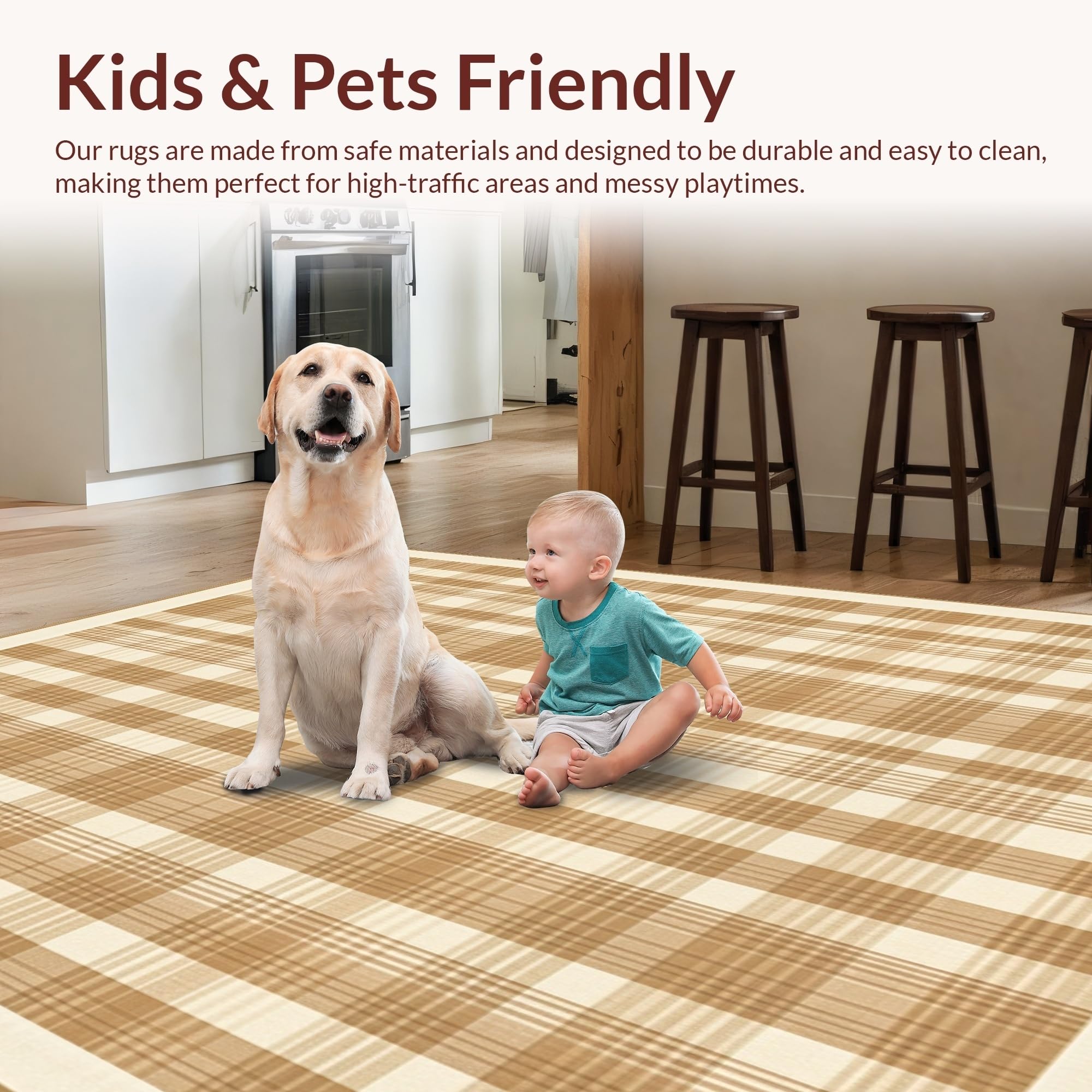 Ultra Soft Area Rug, Non Slip, Stain Resistant, Washable Area Rugs for Living Room, Bedroom, Camel Toned Checker Style Modern Low Profile(Beige) Overview: