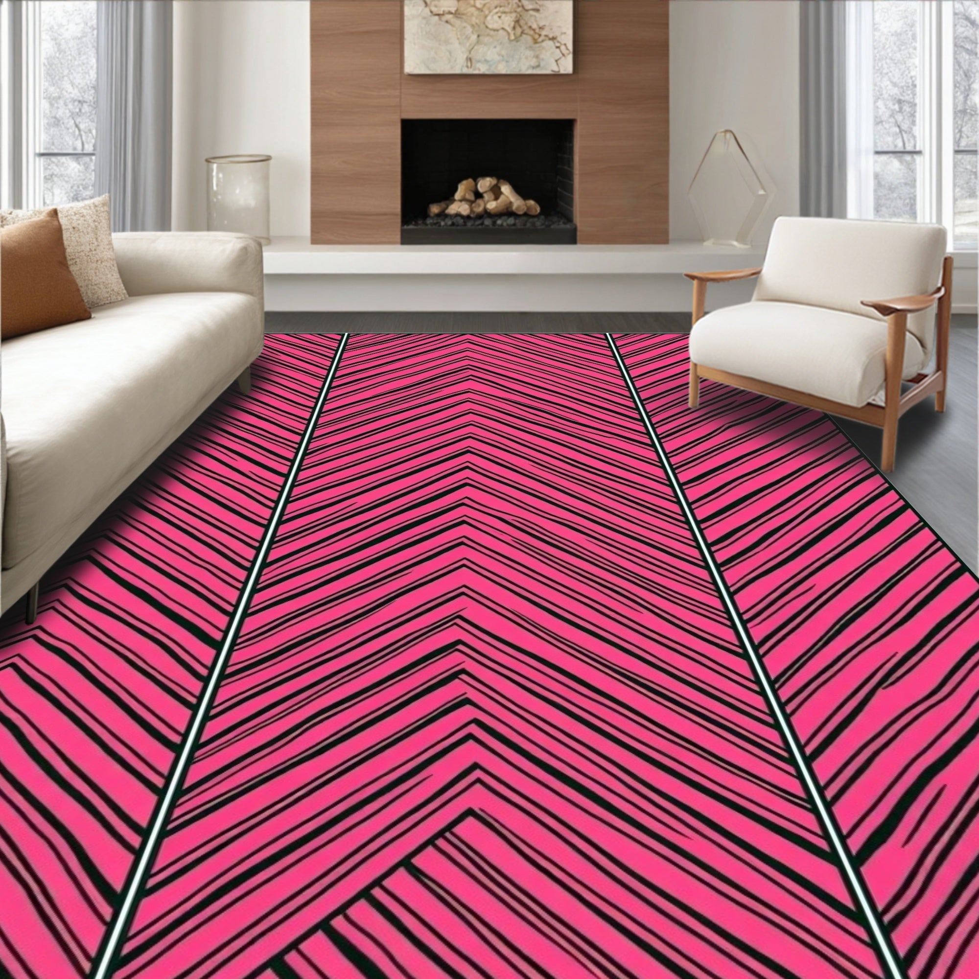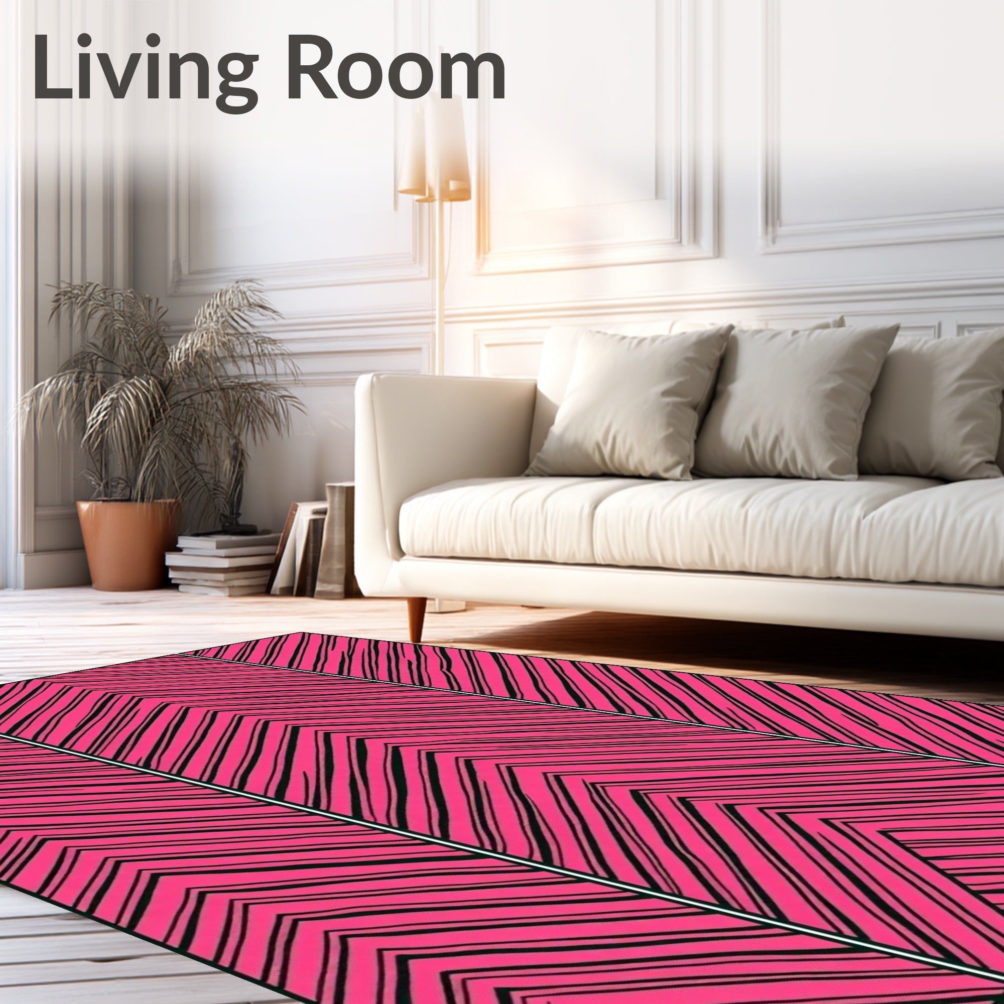 Flatwoven High Traffic Area Rug, Cane Chevron Stripes with Zigzag Holiday Accents, Non Slip, Stain Resistant, Washable Area Rugs for Living Room, Bedroom (Pink) Overview: