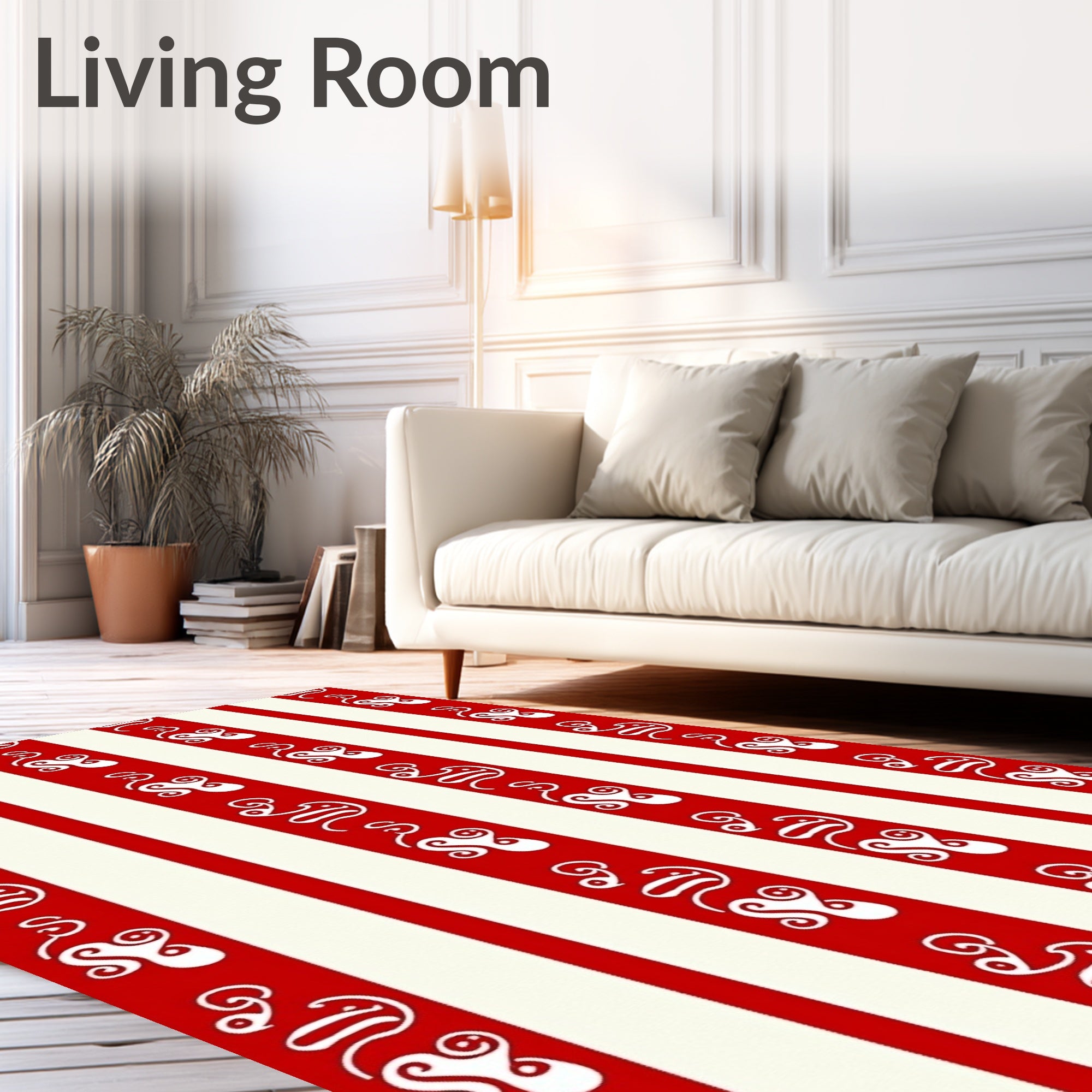 Ultra Soft Area Rug, Non Slip, Stain Resistant, Washable Area Rugs for Living Room, Bedroom, Cane Stripe Doormat with Peppermint Swirl Accents(Red) Overview: