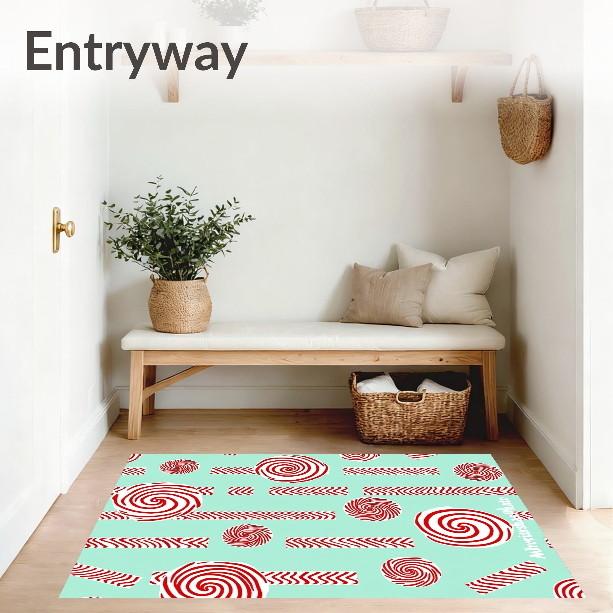 Cane Stripe Doormat with Peppermint Swirl Holiday Design(Red)