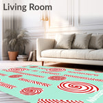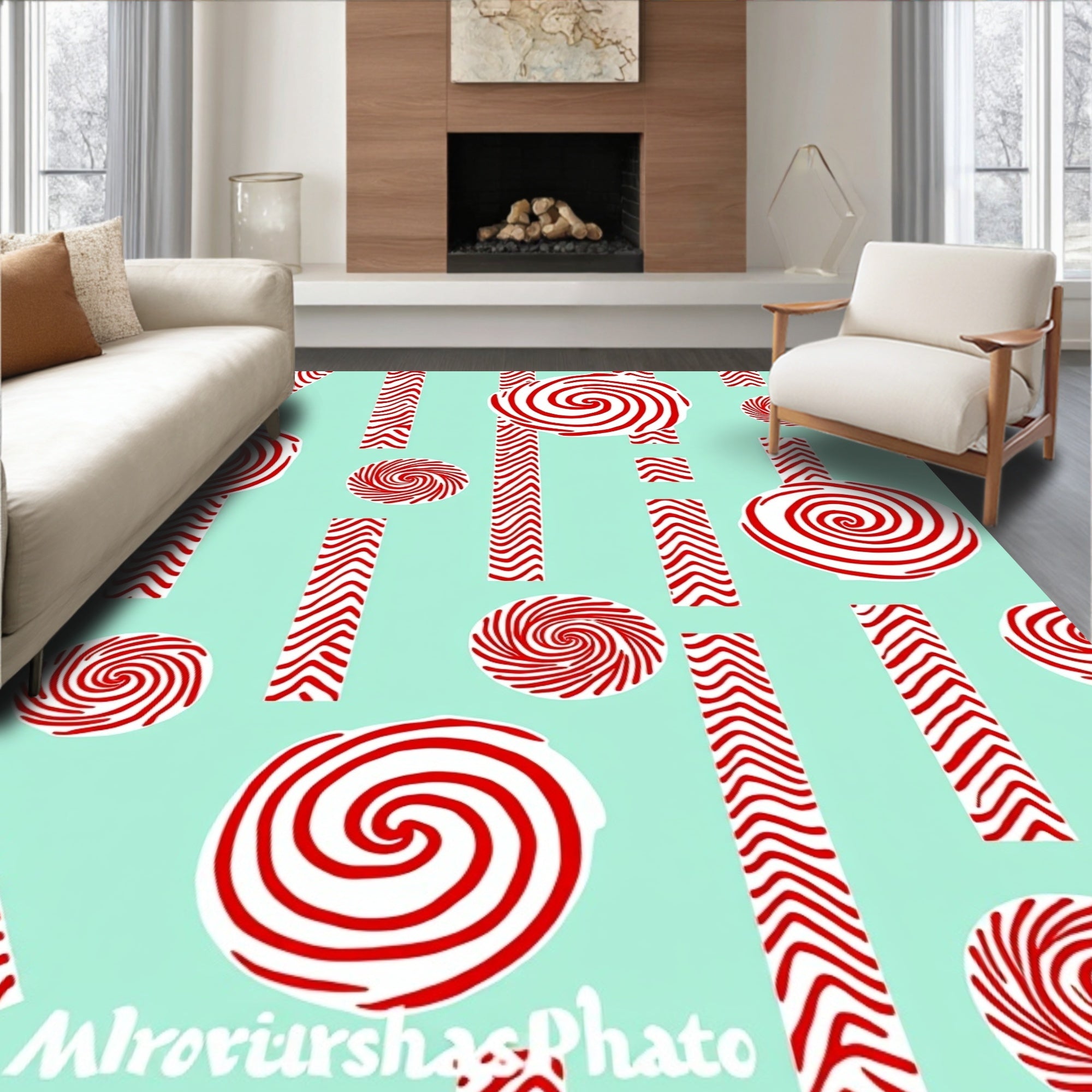 Ultra Soft Area Rug, Non Slip, Stain Resistant, Washable Area Rugs for Living Room, Bedroom, Cane Stripe Doormat with Peppermint Swirl Holiday Design(Red) Overview: