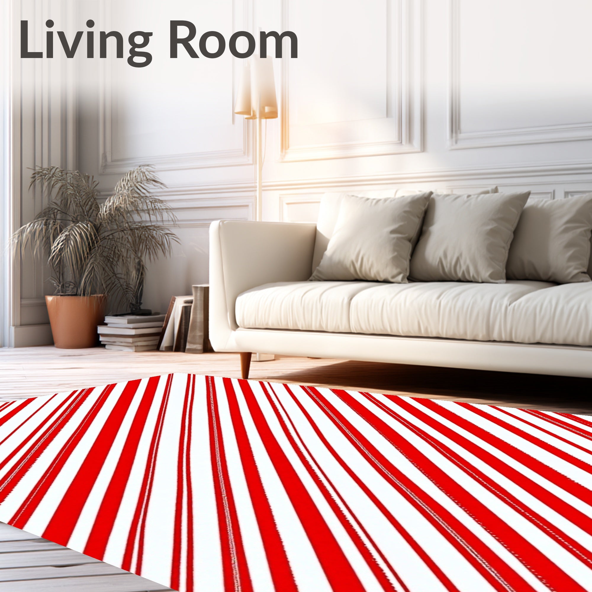 Ultra Soft Area Rug, Non Slip, Stain Resistant, Washable Area Rugs for Living Room, Bedroom, Cane Stripe Holiday Peppermint Twist Design(Red) Overview: