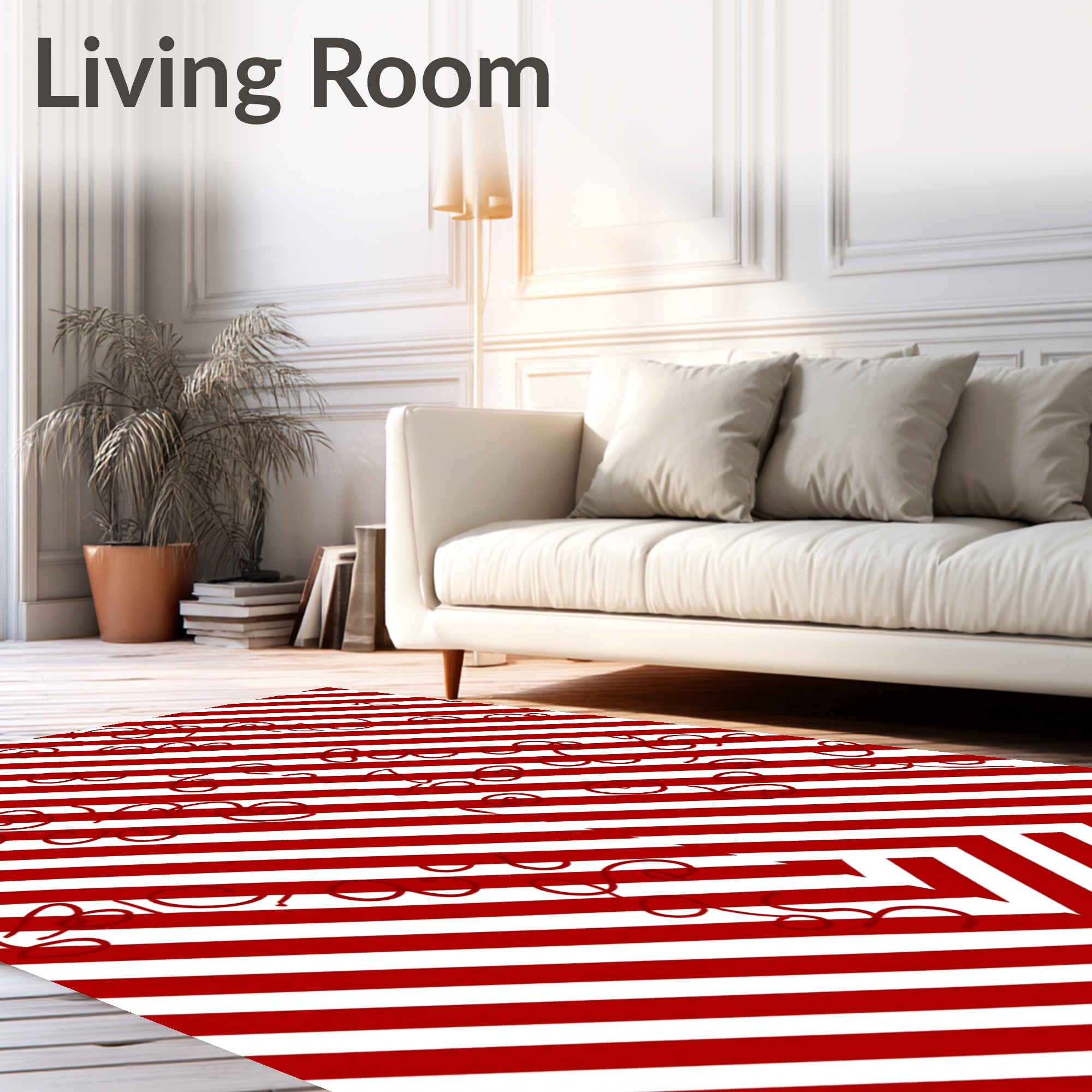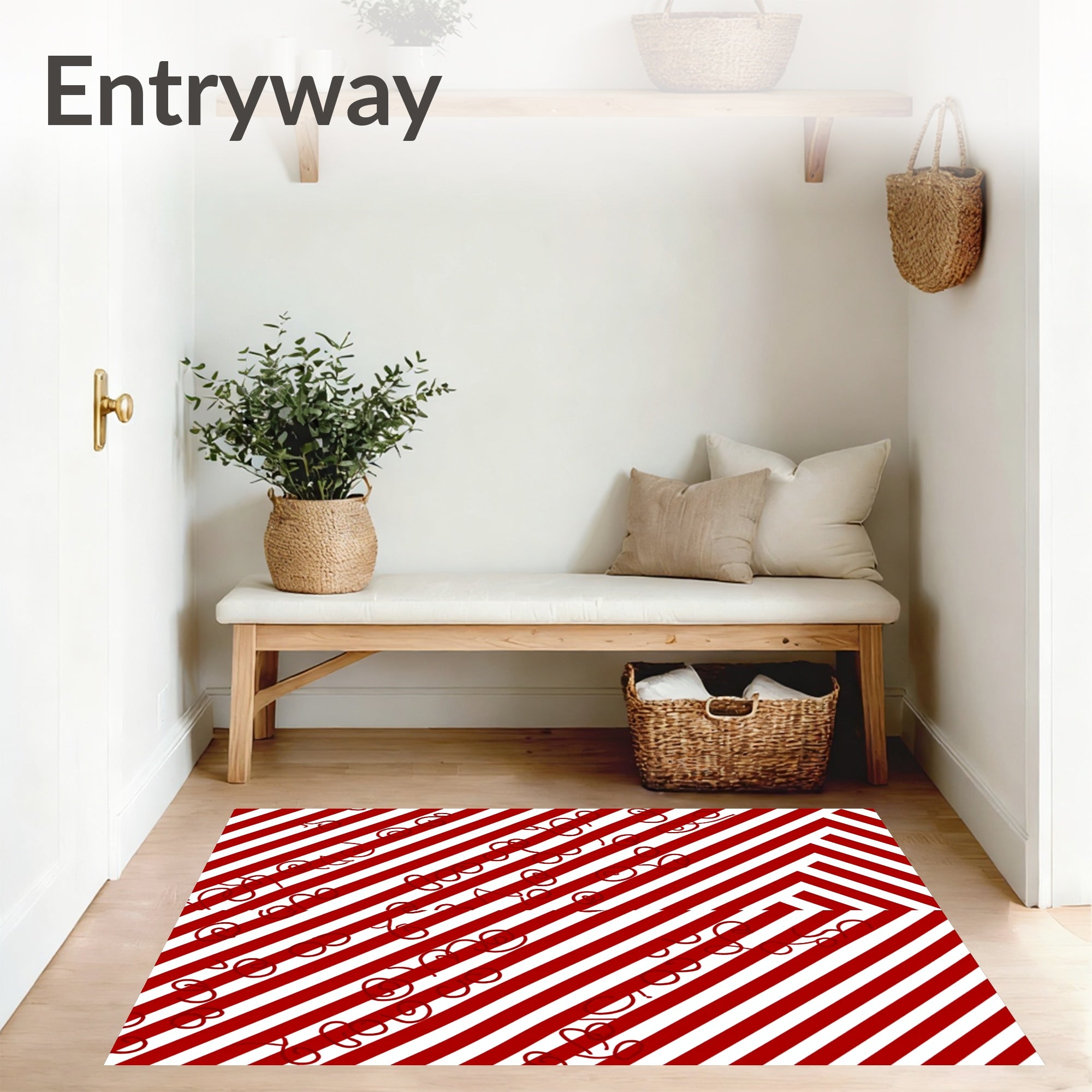 Ultra Soft Area Rug, Non Slip, Stain Resistant, Washable Area Rugs for Living Room, Bedroom, Cane Stripe Spiral Whimsical Holiday Charm(Red) Overview: