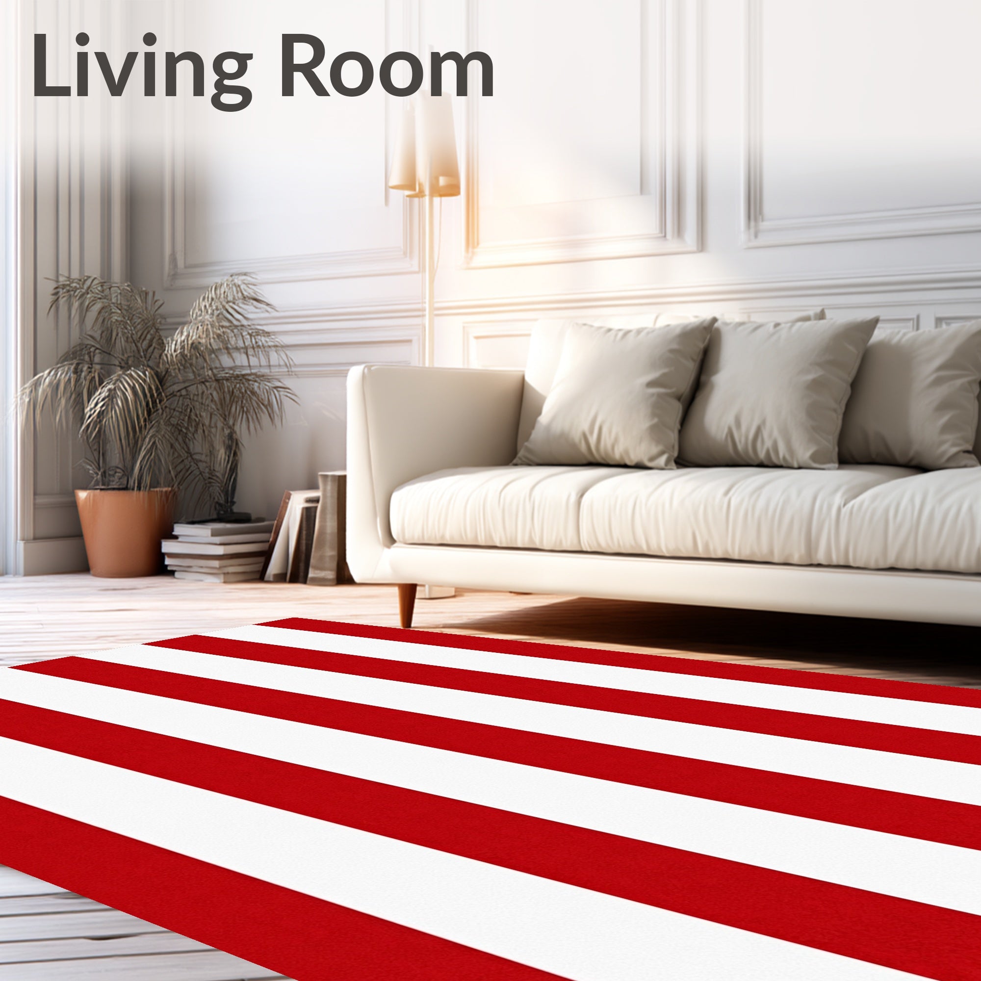 Ultra Soft Area Rug, Non Slip, Stain Resistant, Washable Area Rugs for Living Room, Bedroom, Cane Stripe Welcome Holiday Festive Entrance(Red) Overview: