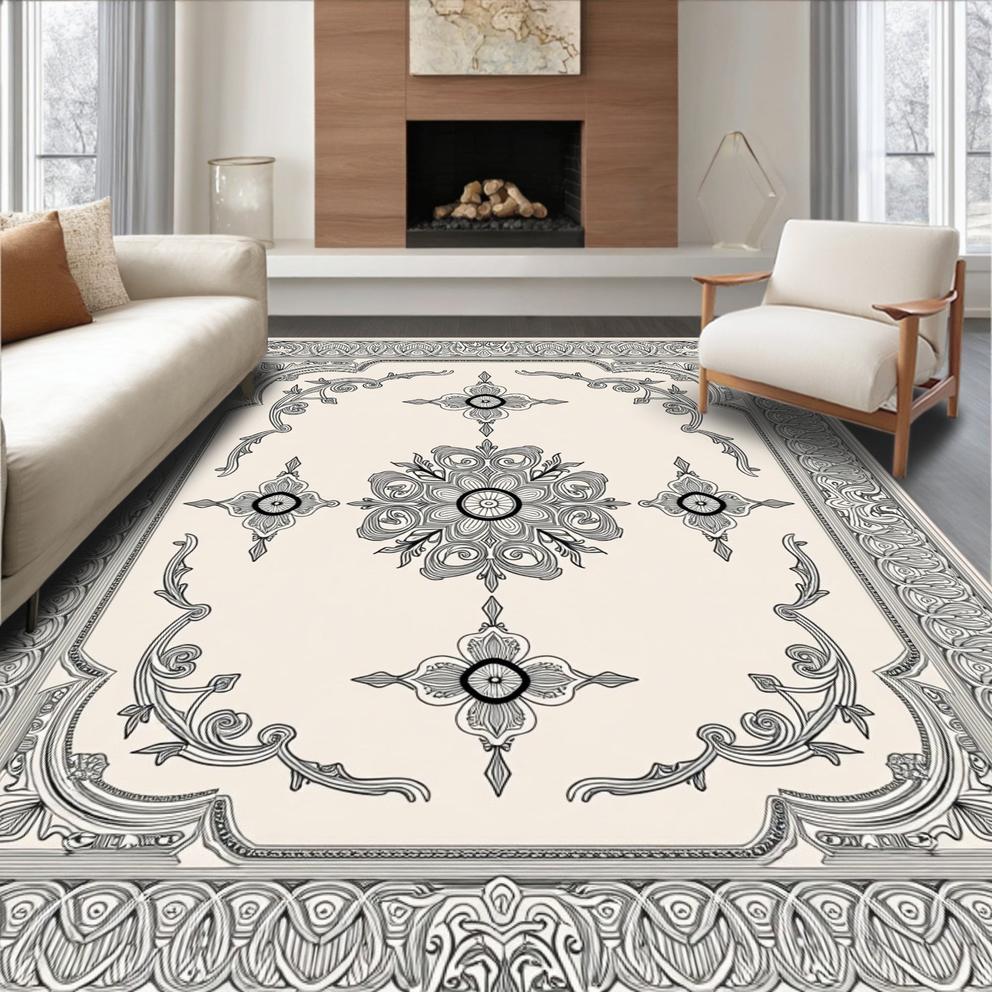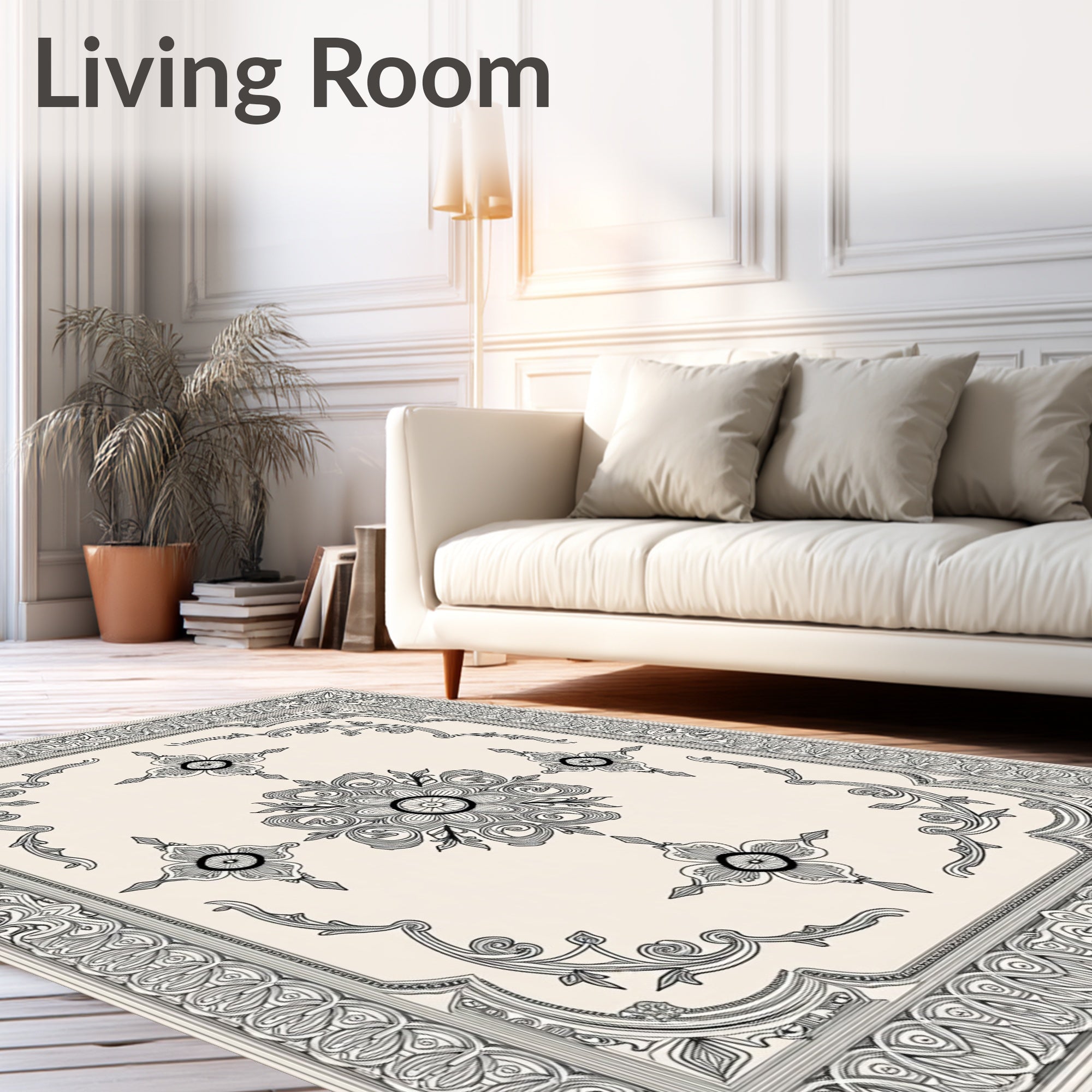 Ultra Soft Area Rug, Non Slip, Stain Resistant, Washable Area Rugs for Living Room, Bedroom, Capitola Medallion Interlocking Scrollwork Design(Beige) Overview: