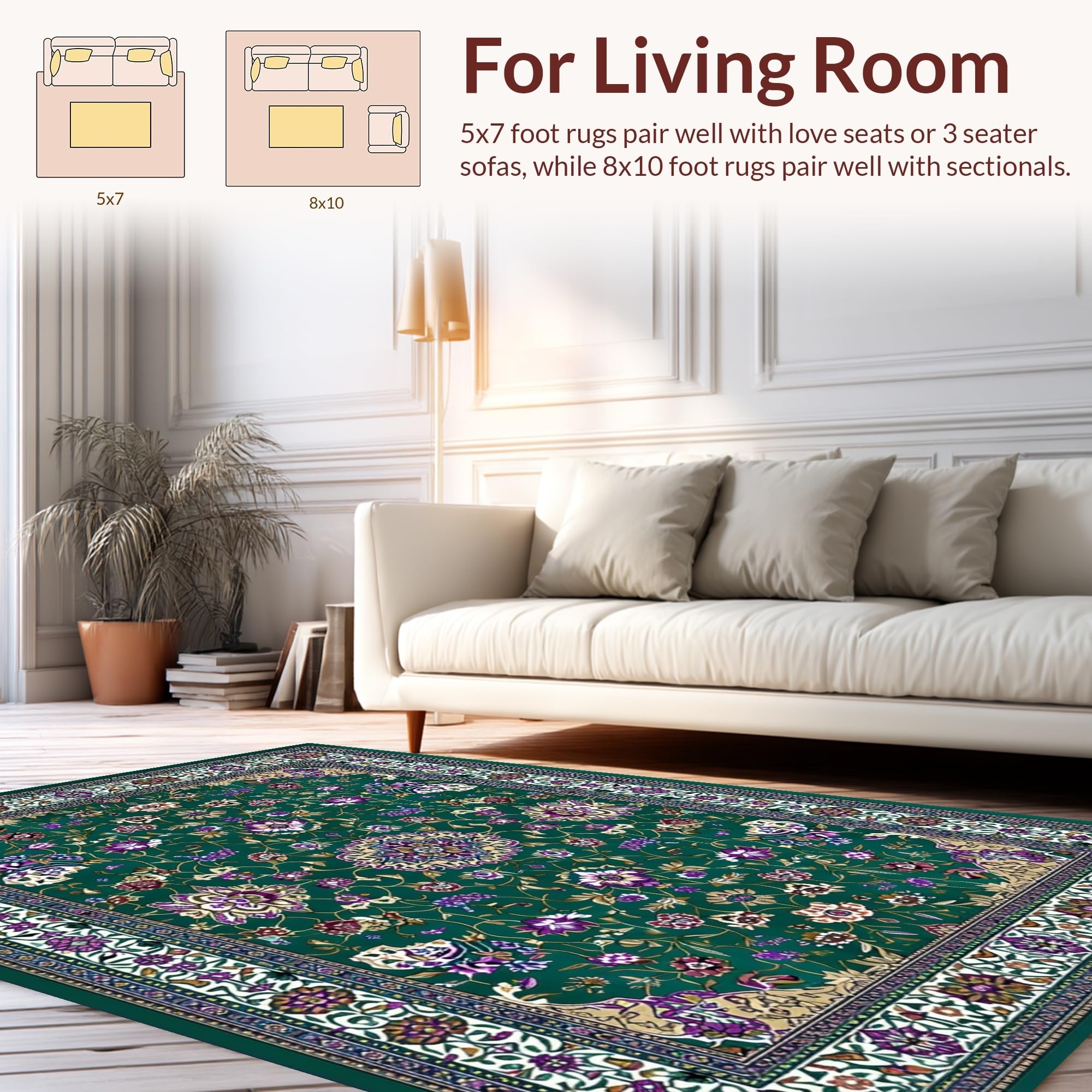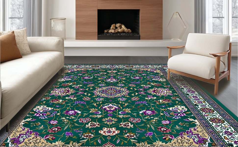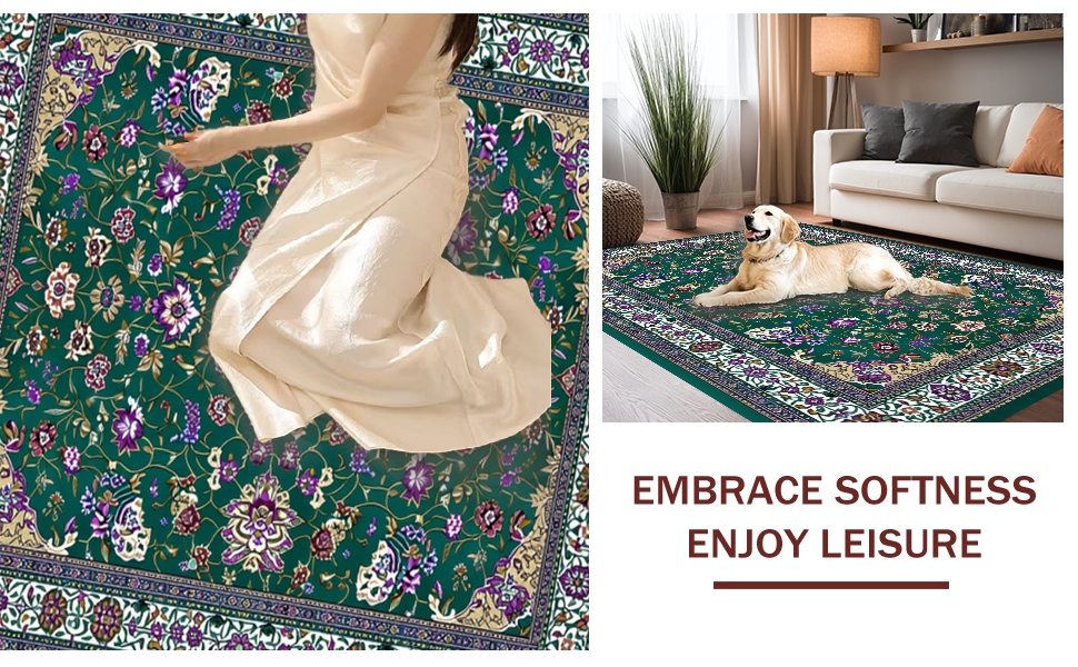 Ultra Soft Area Rug, Non Slip, Stain Resistant, Washable Area Rugs for Living Room, Bedroom, Captivating Organic Leaf Patterns(Green) Overview: