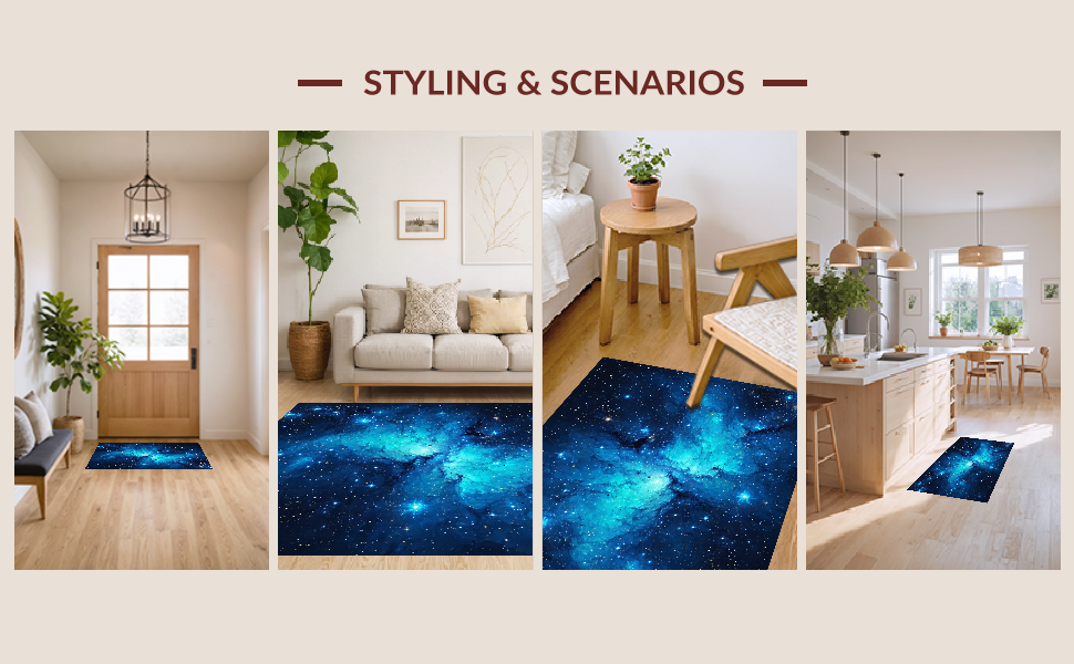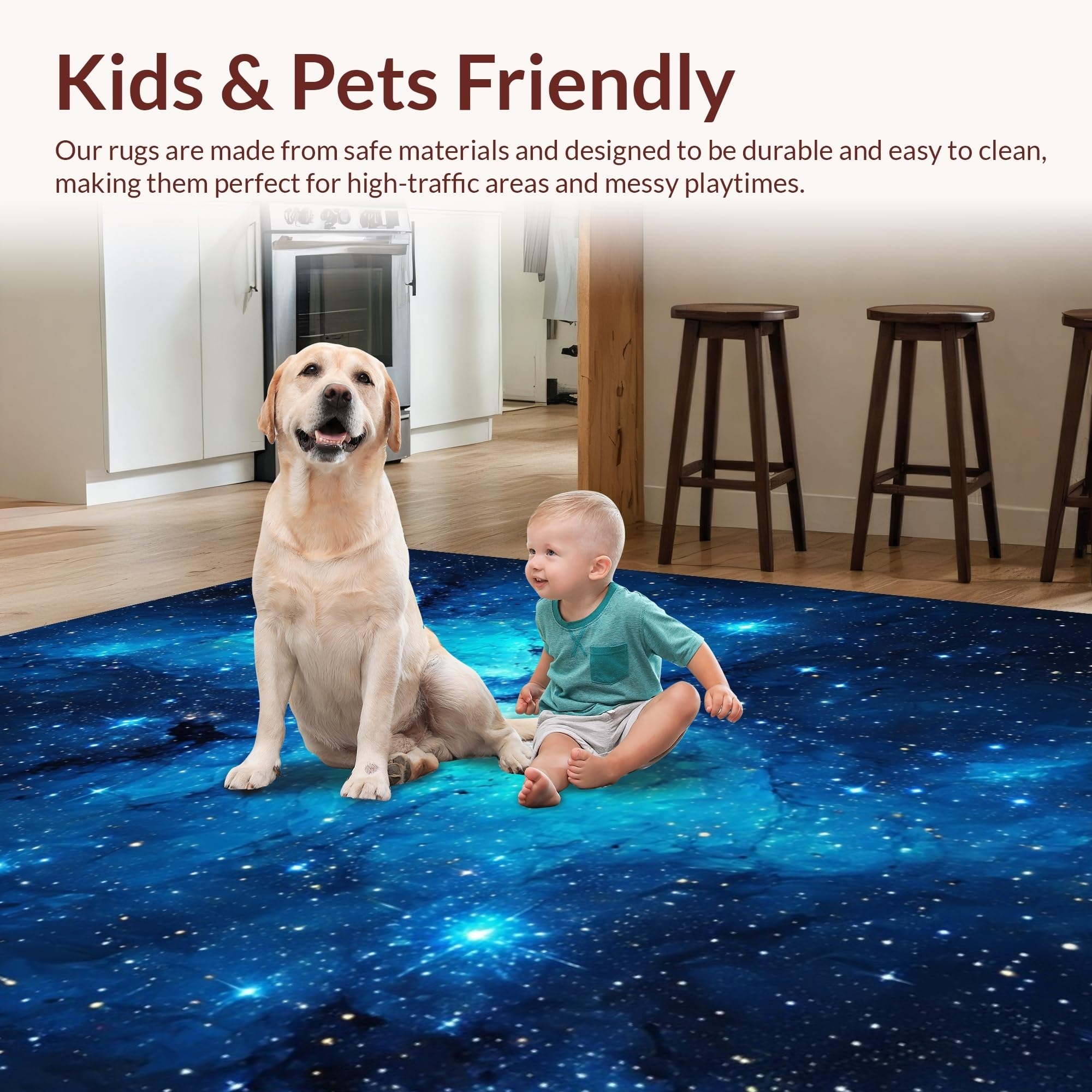 Ultra Soft Area Rug, Non Slip, Stain Resistant, Washable Area Rugs for Living Room, Bedroom, Captivating Soft Celestial Fantasy Scene(Blue) Overview: