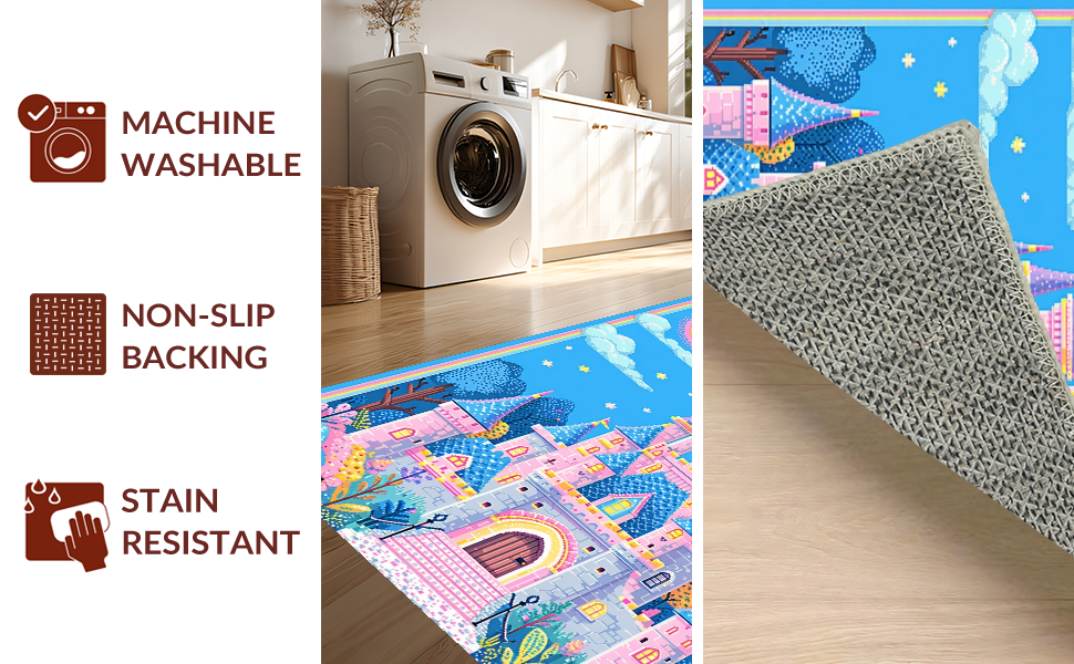 Ultra Soft Area Rug, Non Slip, Stain Resistant, Washable Area Rugs for Living Room, Bedroom, Captivating Storybook Charm Concept(Blue) Overview: