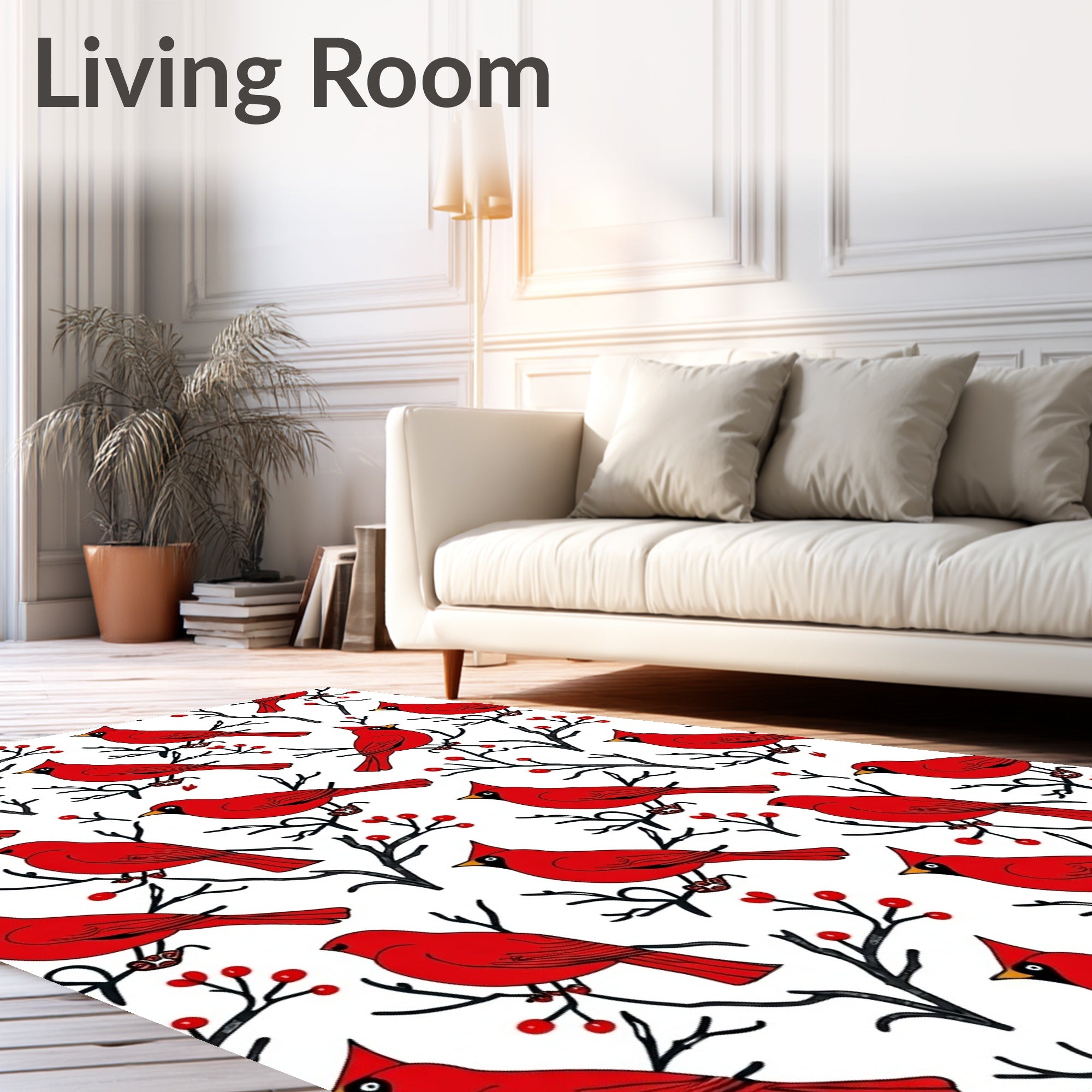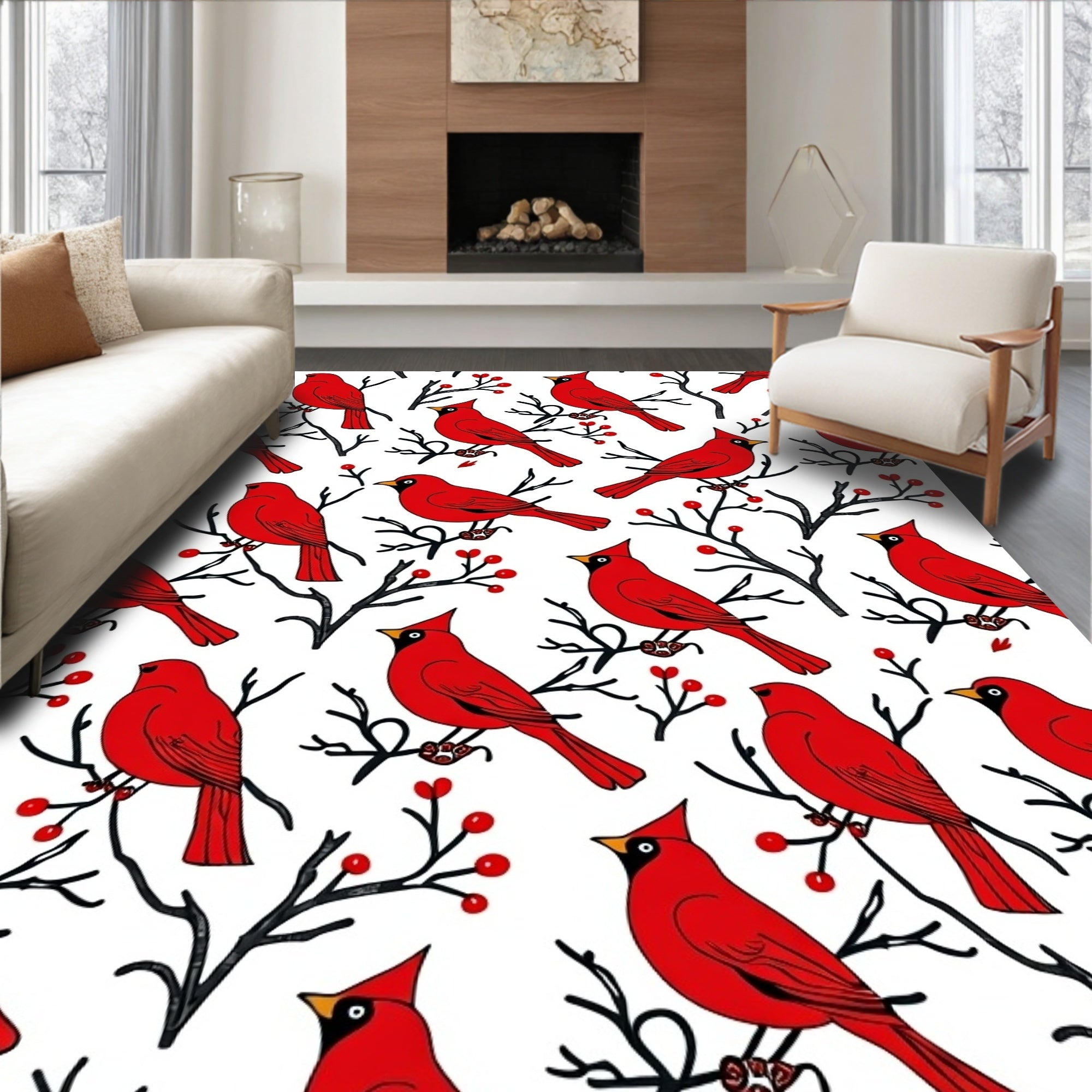 Ultra Soft Area Rug, Non Slip, Stain Resistant, Washable Area Rugs for Living Room, Bedroom, Cardinal Motif with Winter Berry Branch Decorative Floor(Red) Overview: