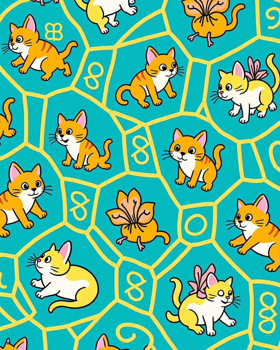 Cartoon Animal Friends Frolic with Interlocking Fishbone Motifs(Teal)