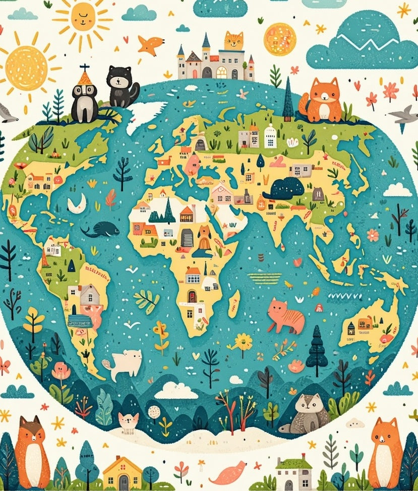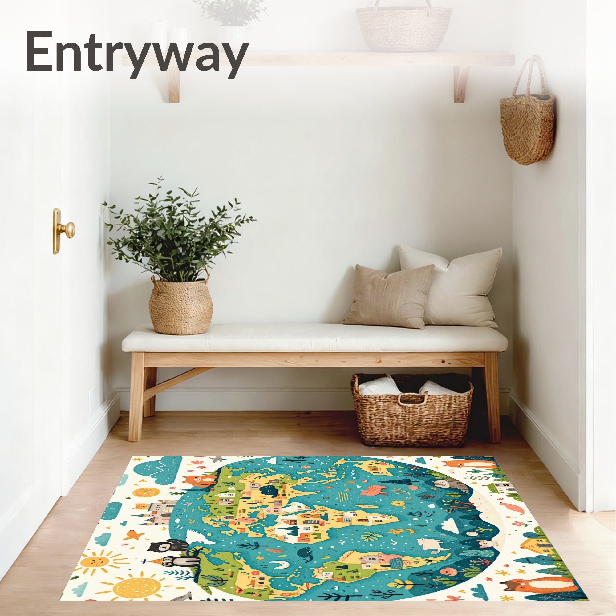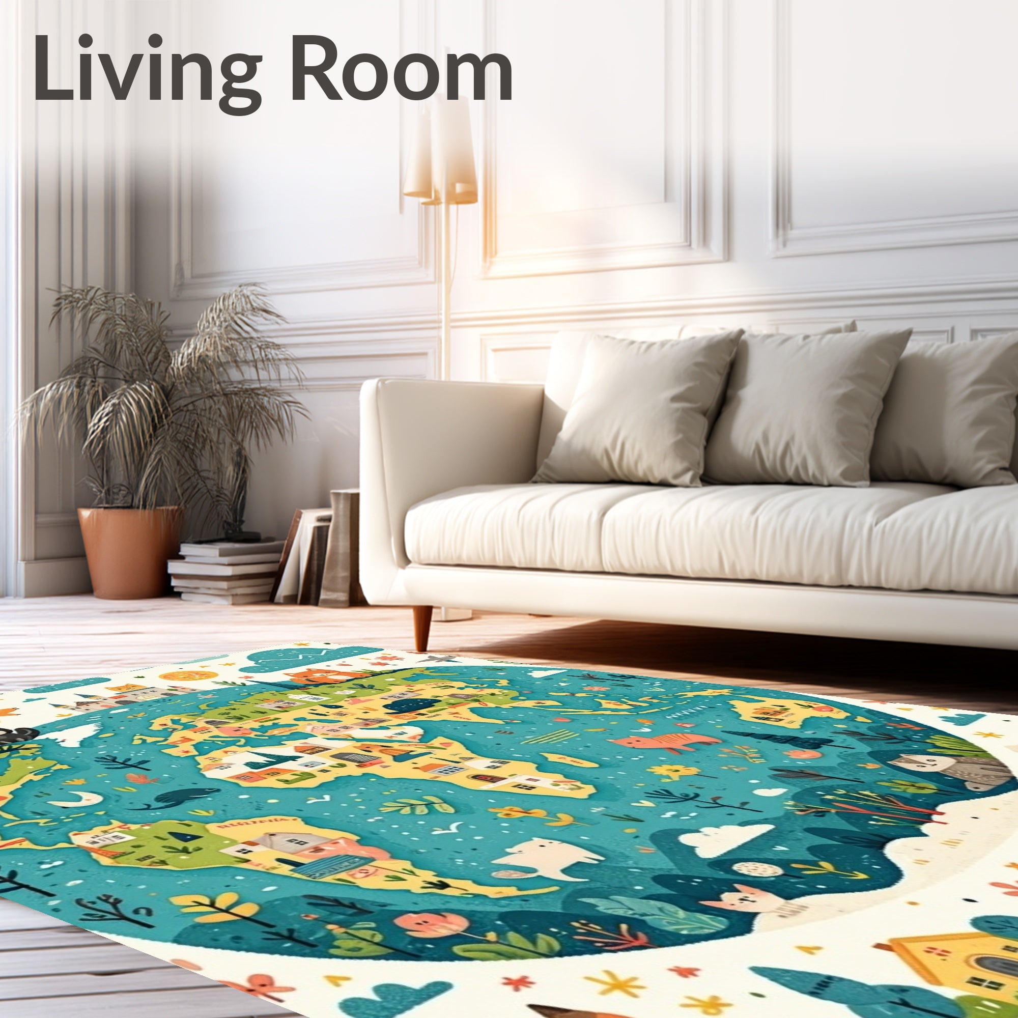 Flatwoven High Traffic Area Rug, Cartoon Animals and Geographic Icons Round, Non Slip, Stain Resistant, Washable Area Rugs for Living Room, Bedroom (Blue) Overview: