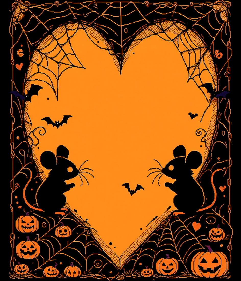Cartoon Mouse Spider Web with Black Heart and Pink Gothic Accents(Orange)