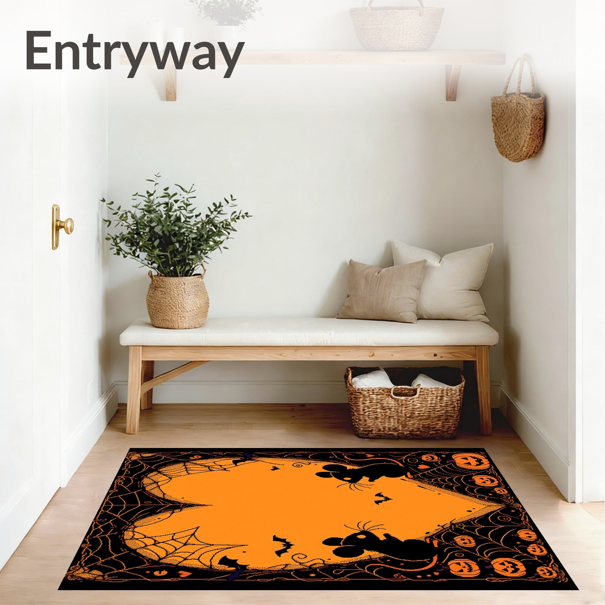 Ultra Soft Area Rug, Non Slip, Stain Resistant, Washable Area Rugs for Living Room, Bedroom, Cartoon Mouse Spider Web with Black Heart and Pink Gothic Accents(Orange) Overview: