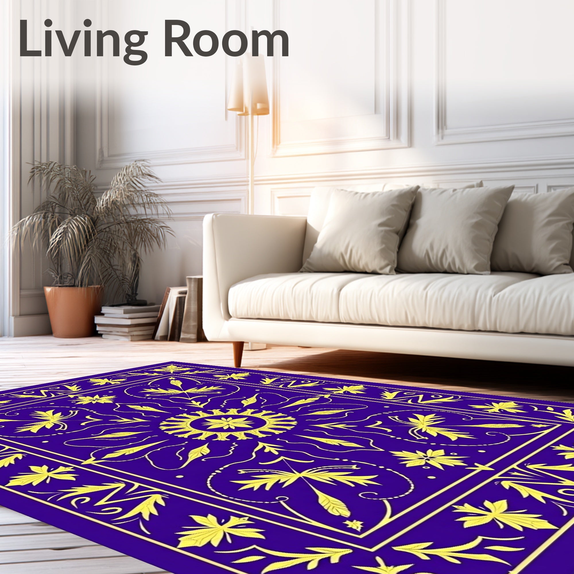 Flatwoven High Traffic Area Rug, Casbah Snowflake Lattice Holiday Botanical Filigree Design, Non Slip, Stain Resistant, Washable Area Rugs for Living Room, Bedroom (Purple) Overview: