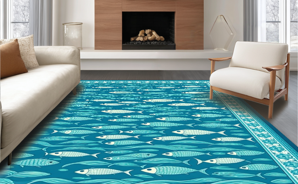 Ultra Soft Area Rug, Non Slip, Stain Resistant, Washable Area Rugs for Living Room, Bedroom, Casual Underwater Scene Decor(Blue) Overview:
