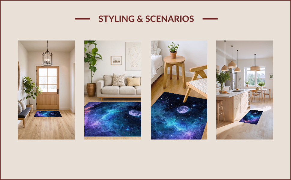 Ultra Soft Area Rug, Non Slip, Stain Resistant, Washable Area Rugs for Living Room, Bedroom, Celestial Dark Blue Fantasy Design(Blue) Overview: